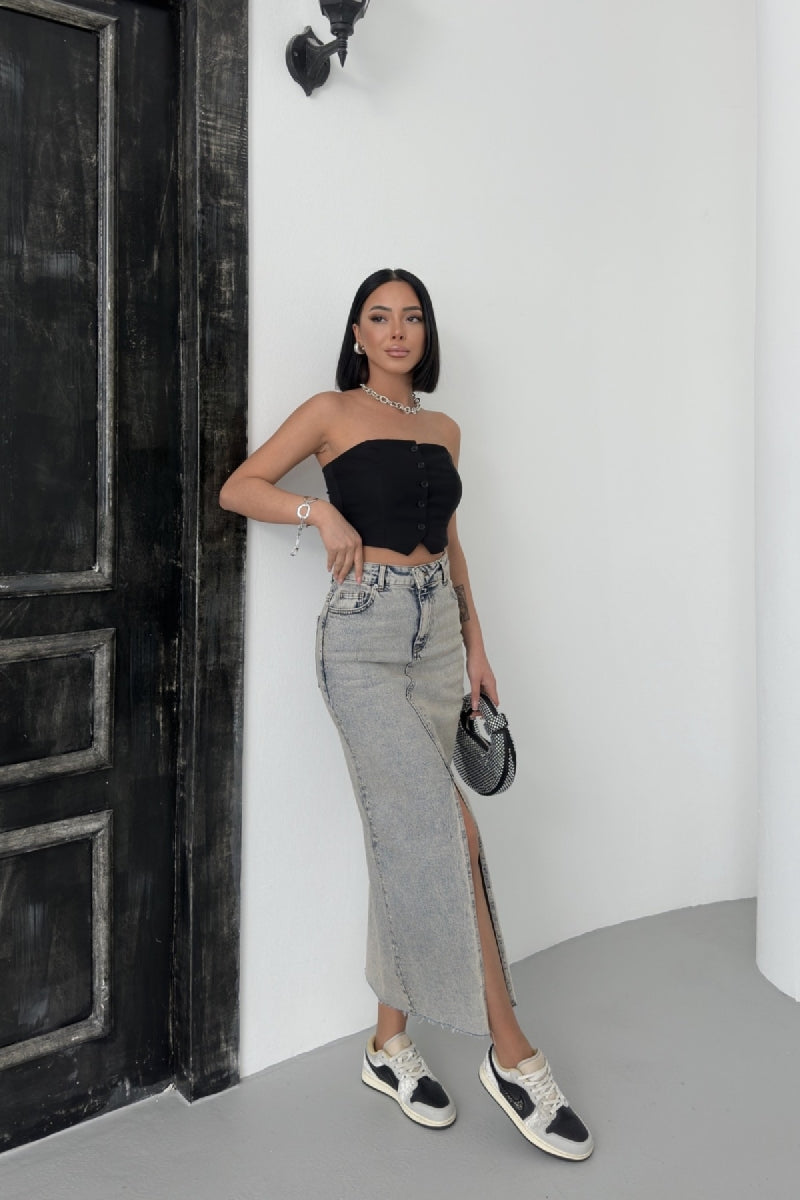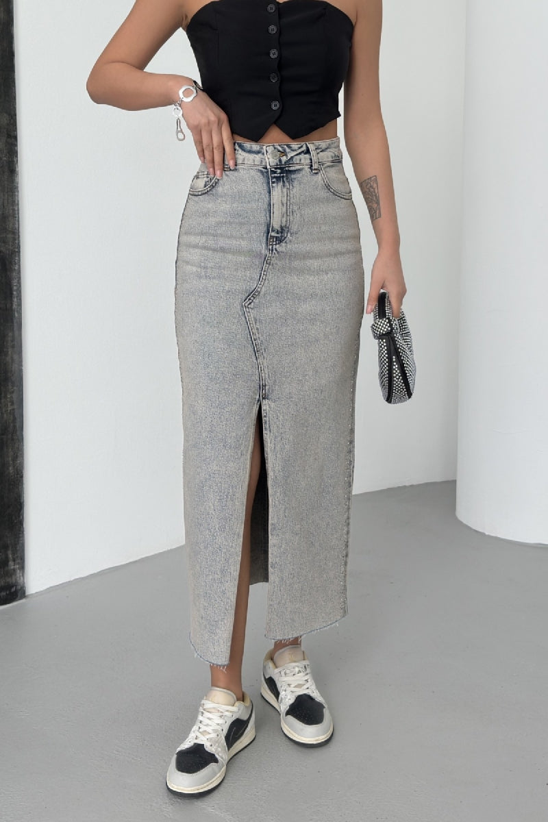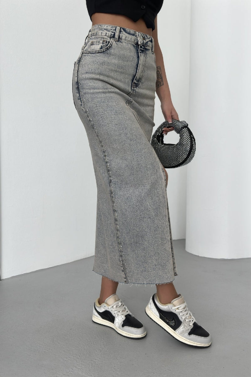 Taşlı Kot Etek 1072