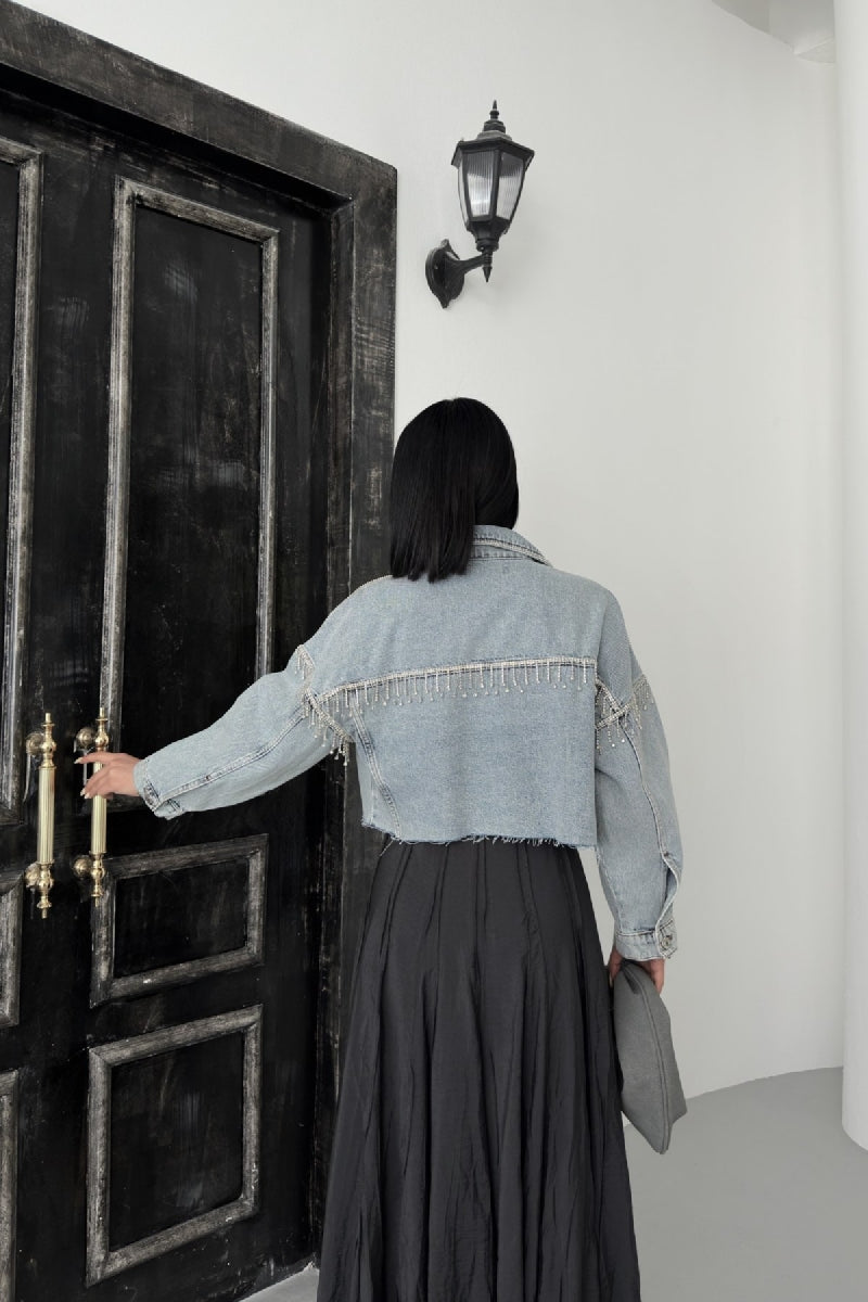 Taşlı Kısa Oversize Kot Ceket 6084