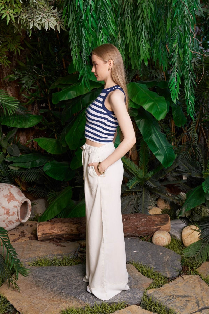 Paça Detaylı Lastikli Keten Pantolon HS700