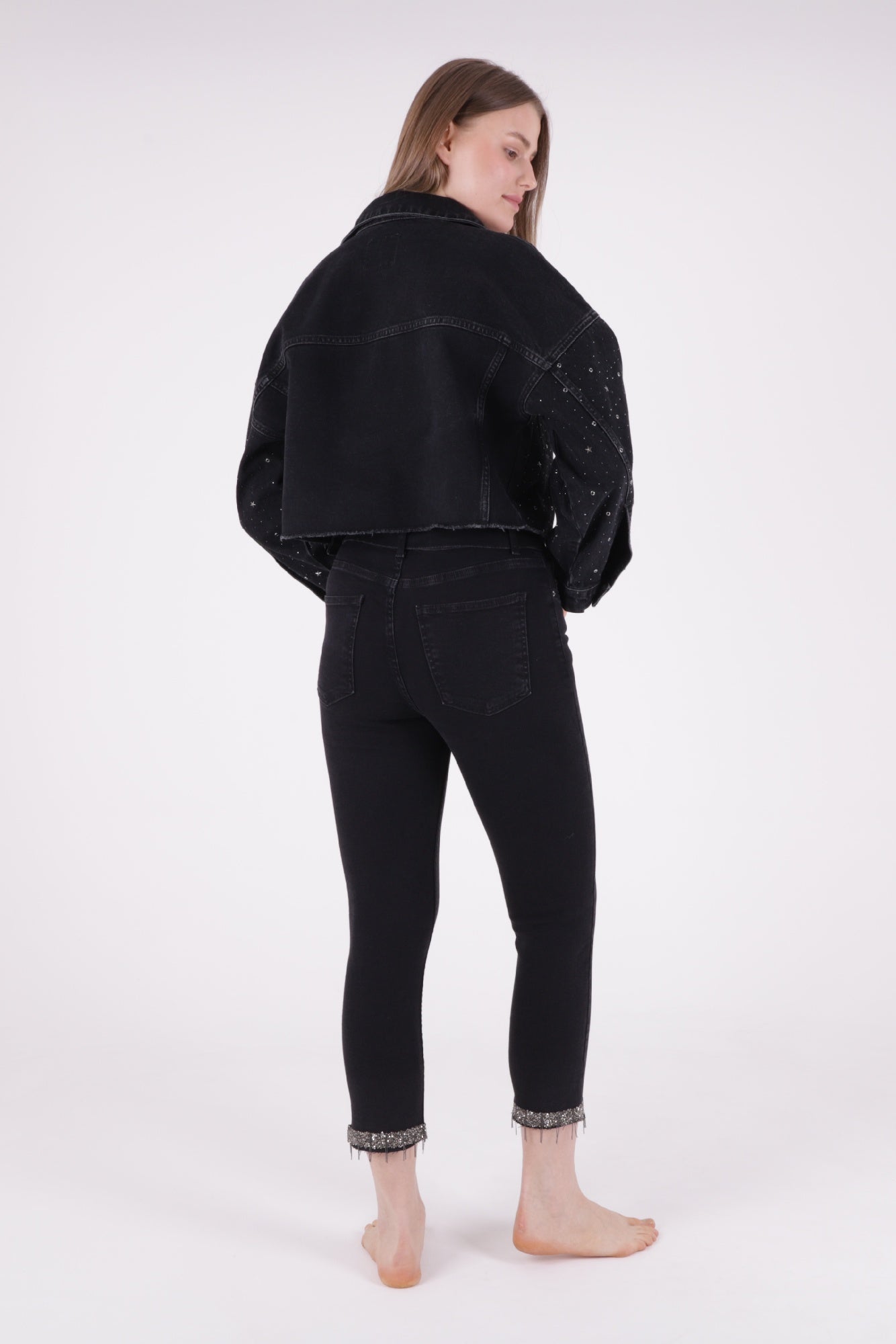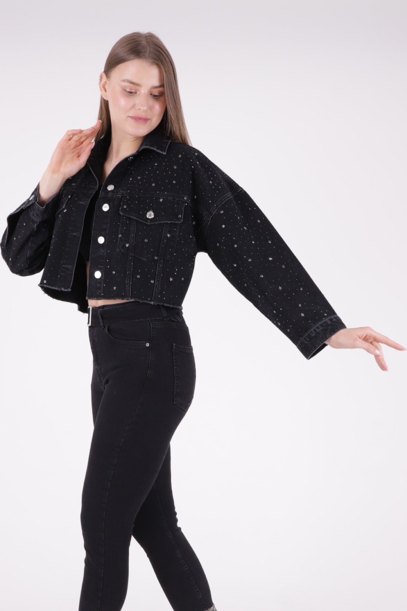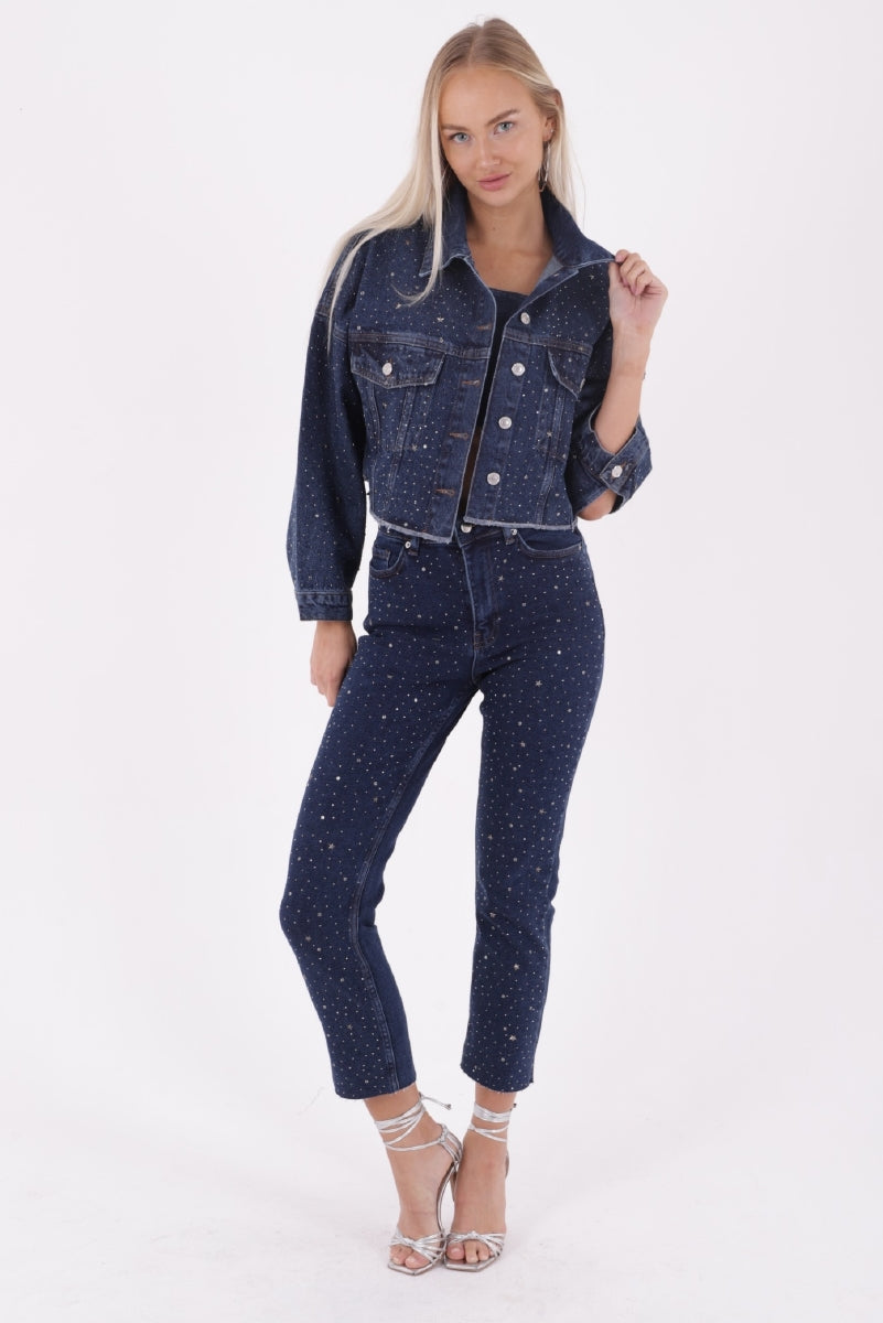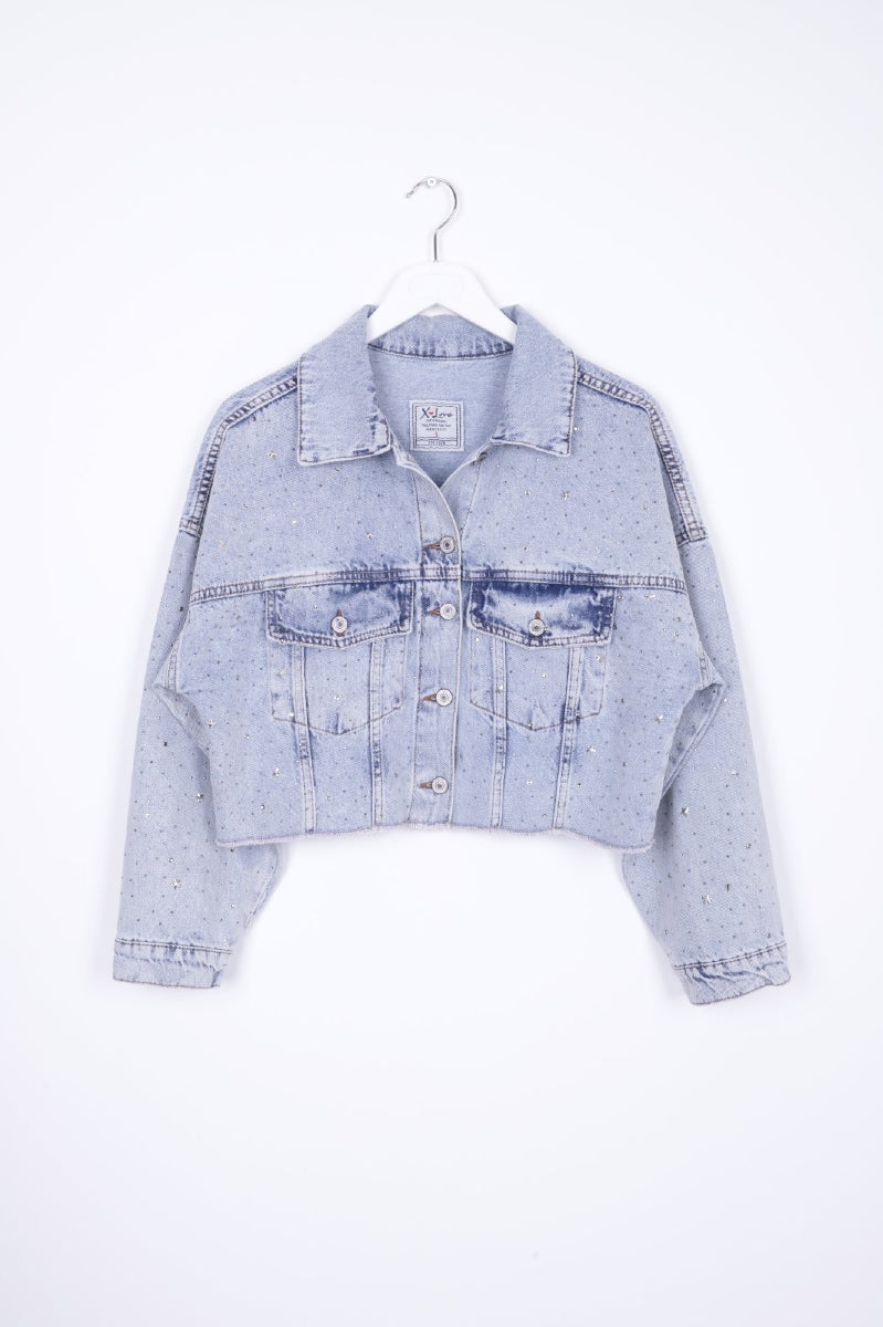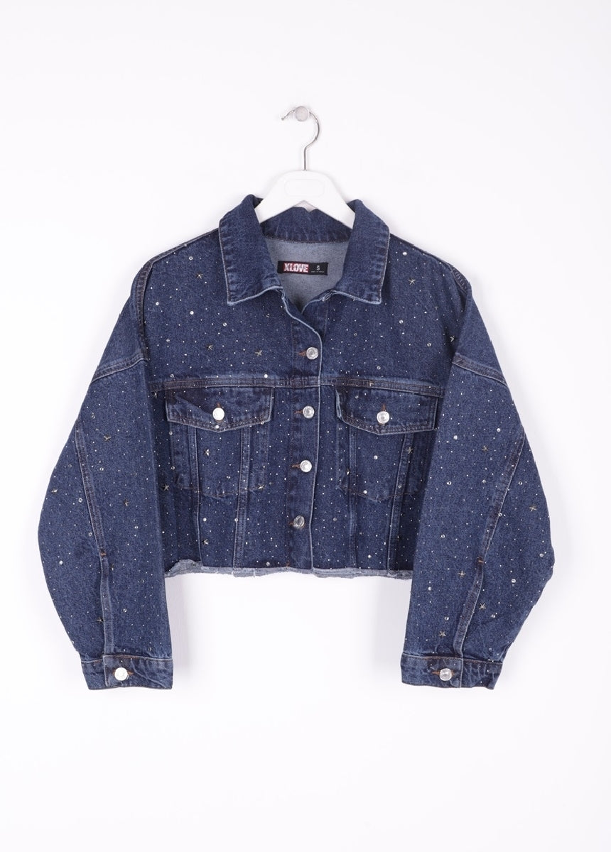 Taşlı Kısa Oversize Kot Ceket 6005
