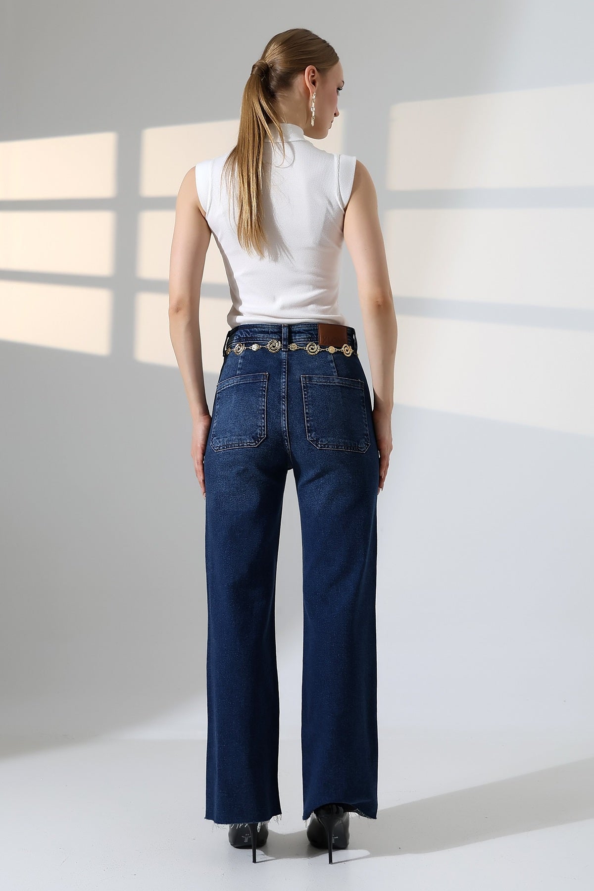Dekoratif Cep Detaylı Palazzo Kot Pantolon 1710