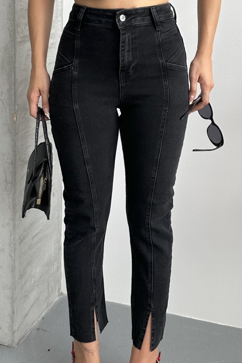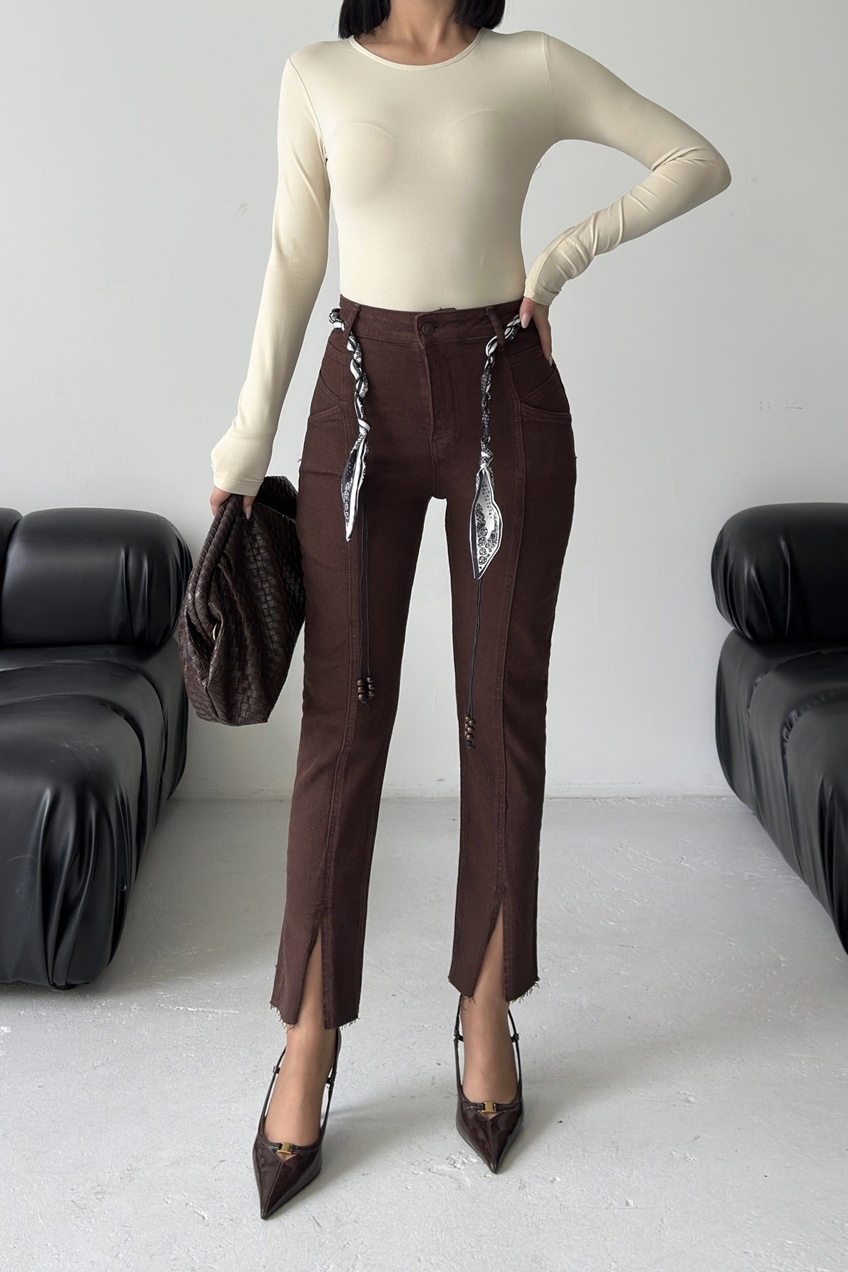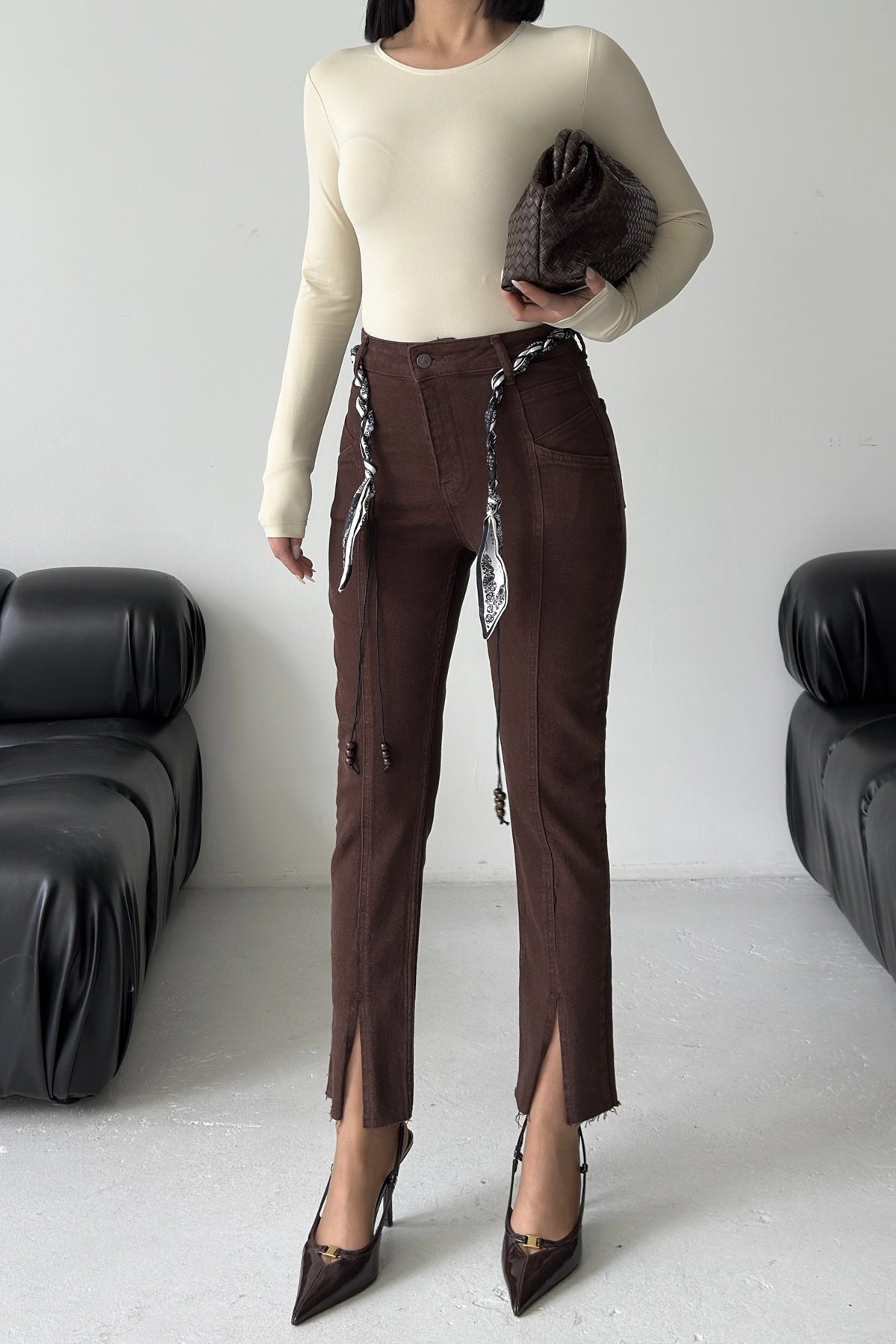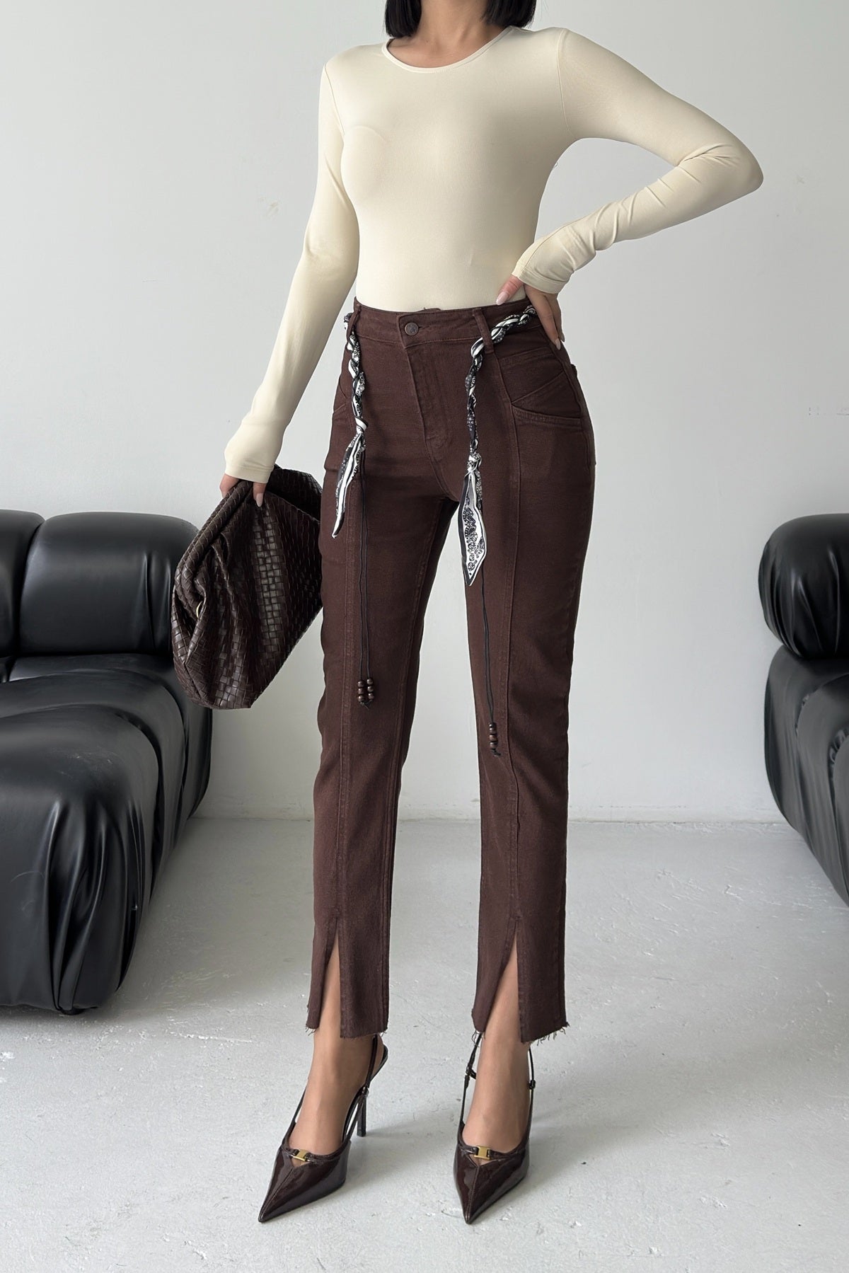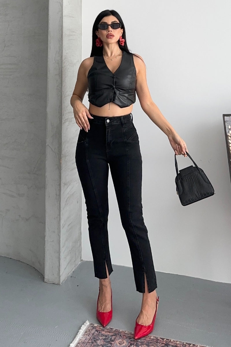Parçalı Önü Yırtmaçlı Dikişsiz Paça Pantolon 1743