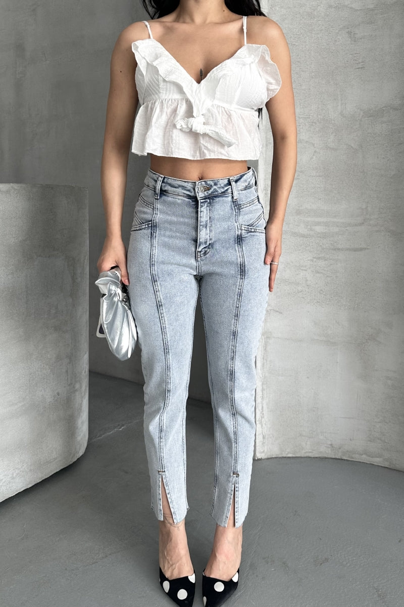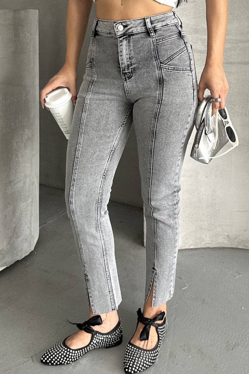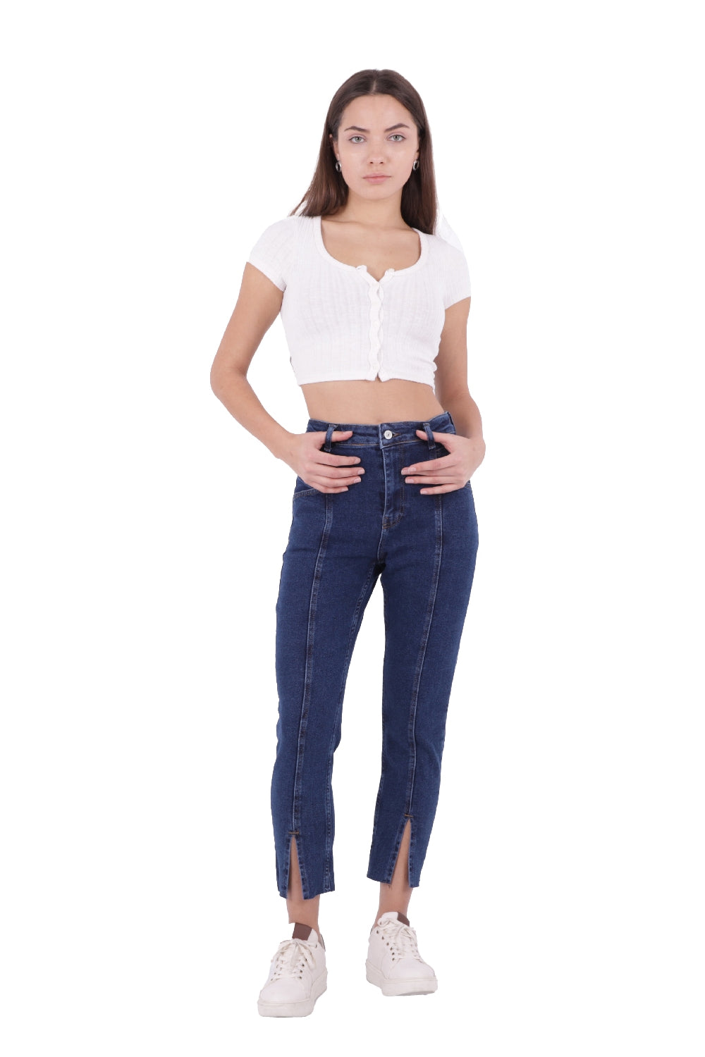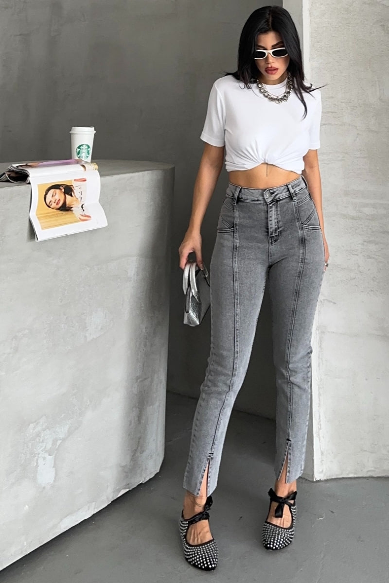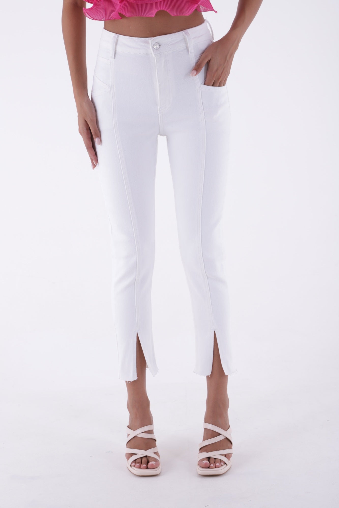 Parçalı Önü Yırtmaçlı Dikişsiz Paça Pantolon 1743