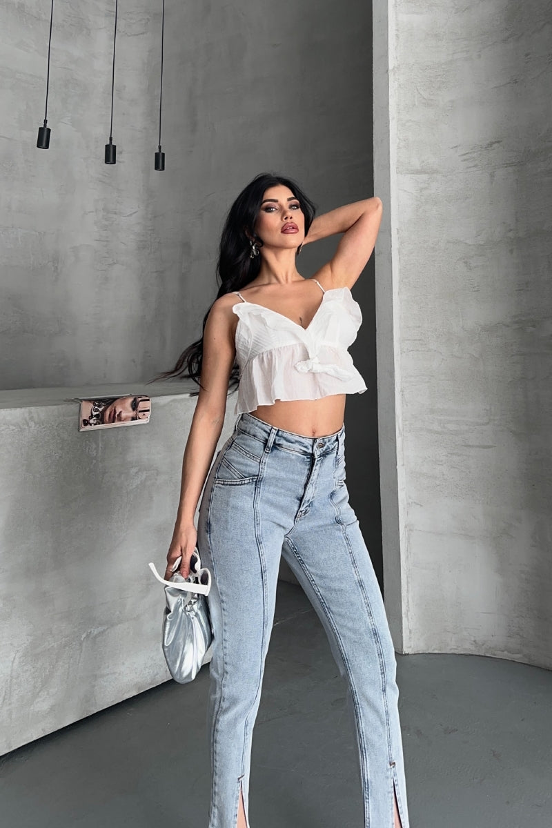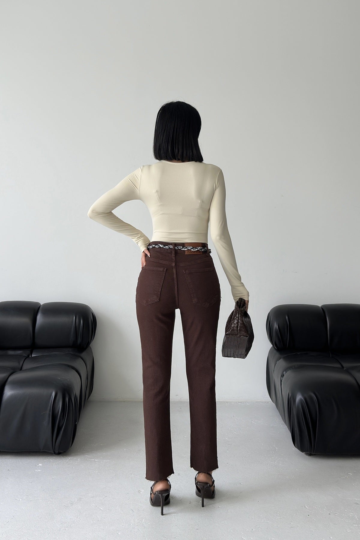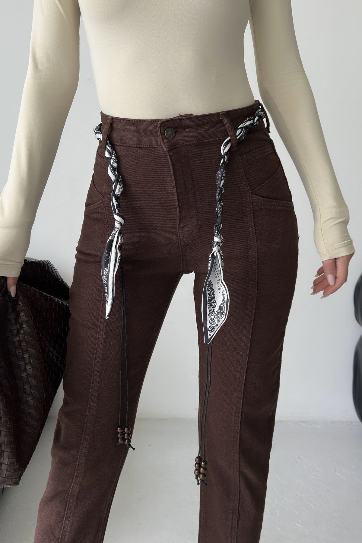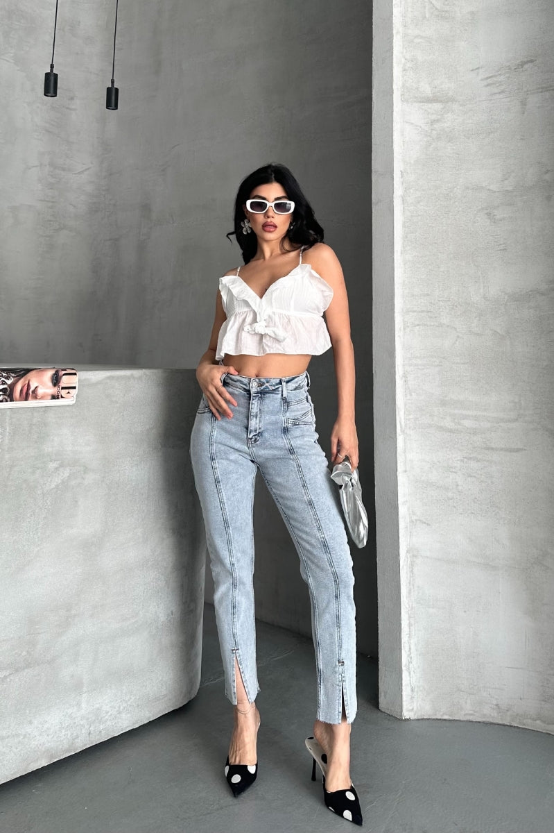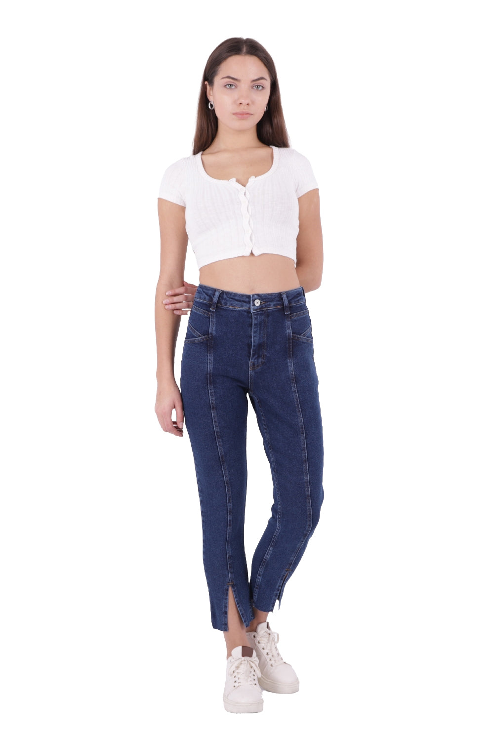 Parçalı Önü Yırtmaçlı Dikişsiz Paça Pantolon 1743