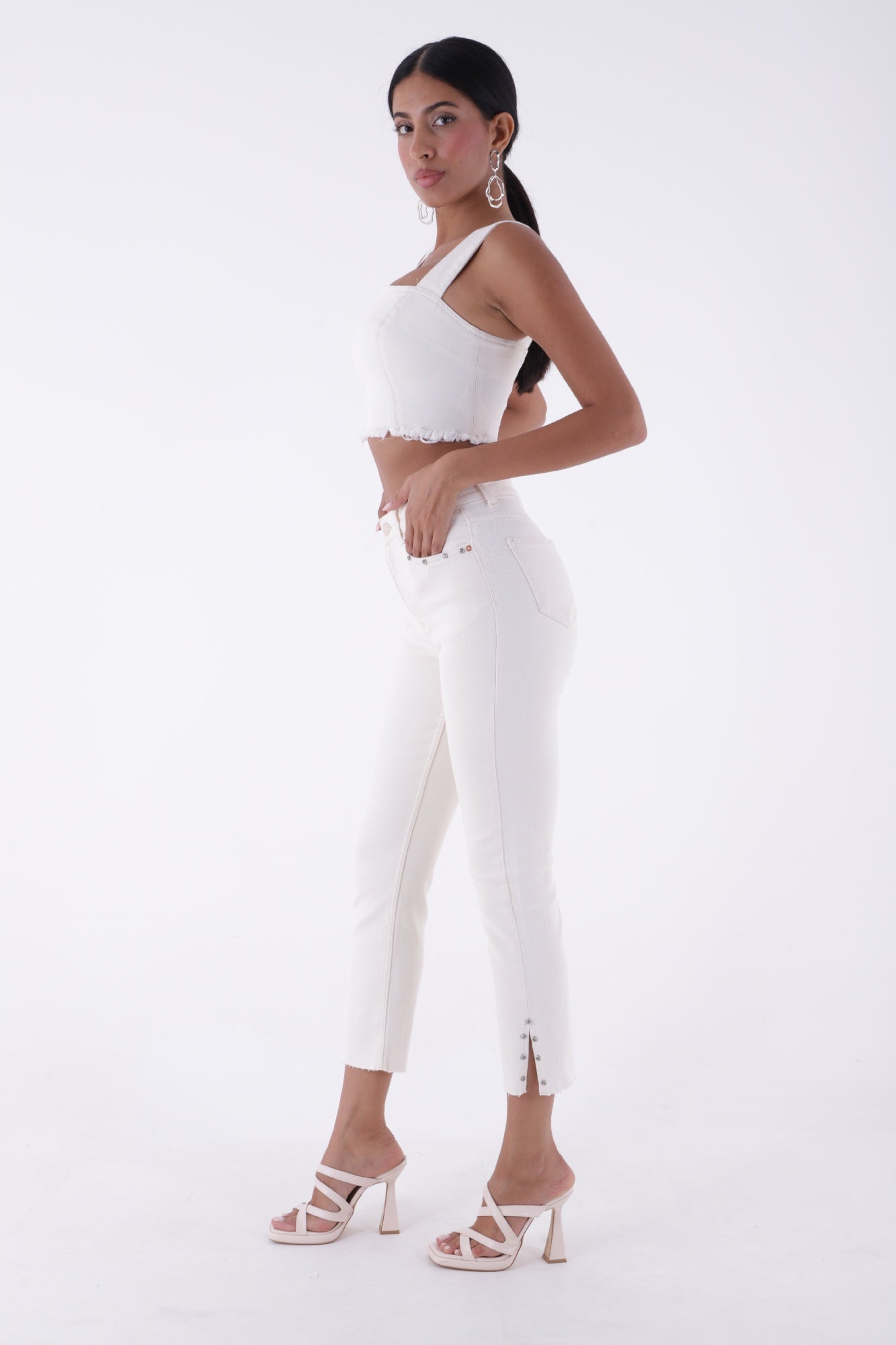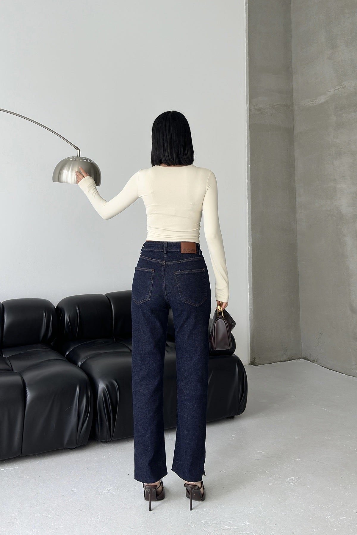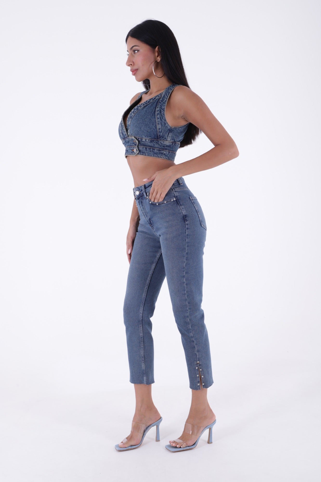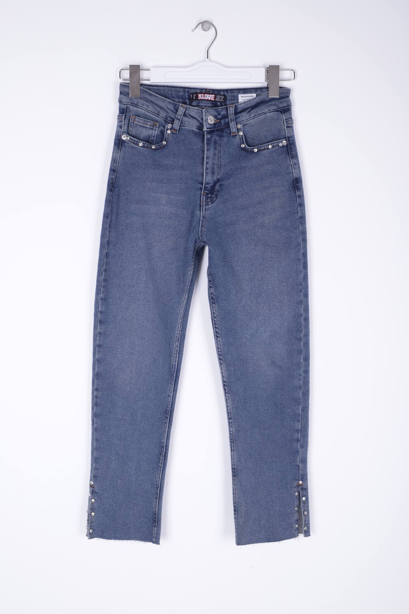 Yanı Yırtmaçlı Flare Paça Mom Kot Pantolon 1774