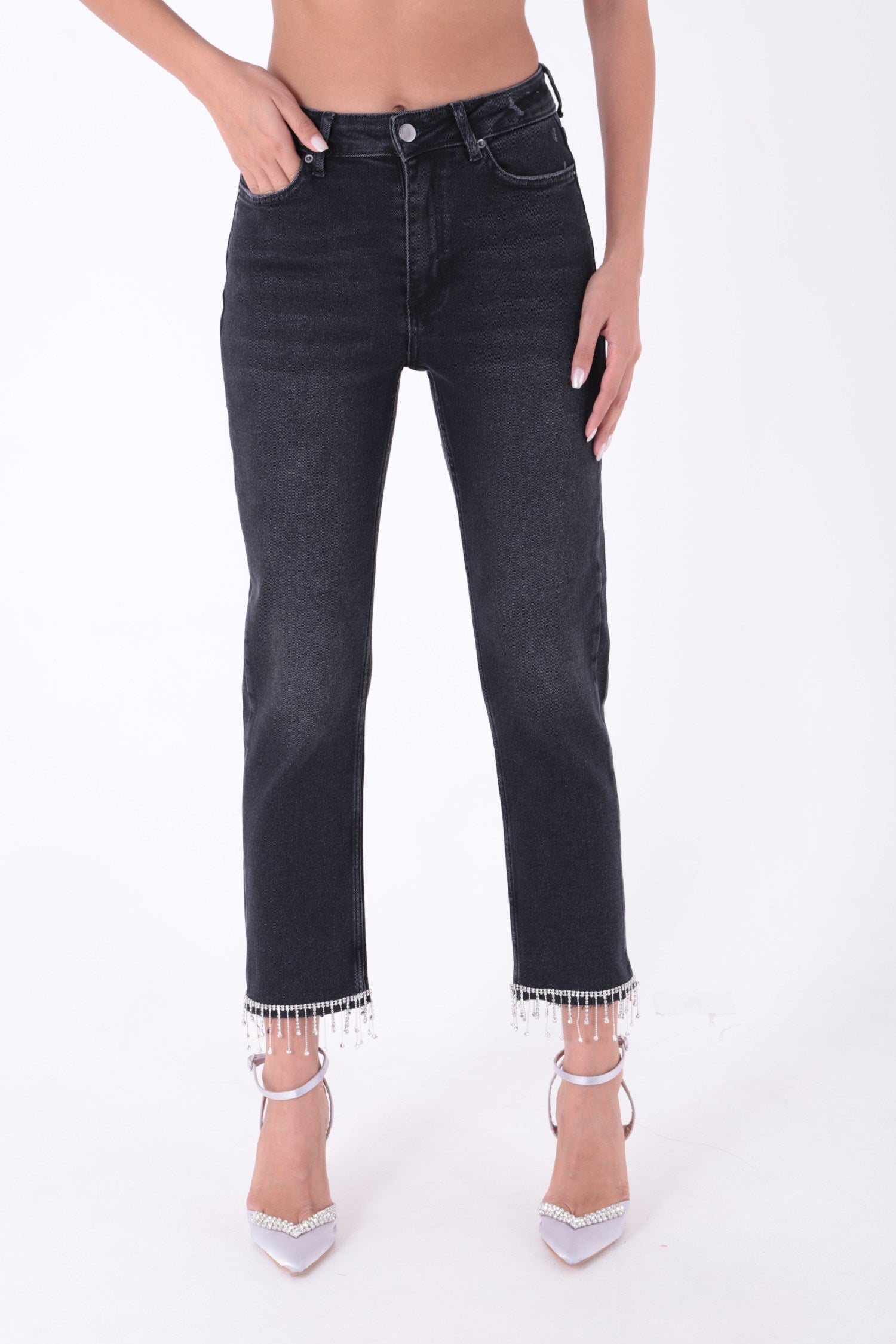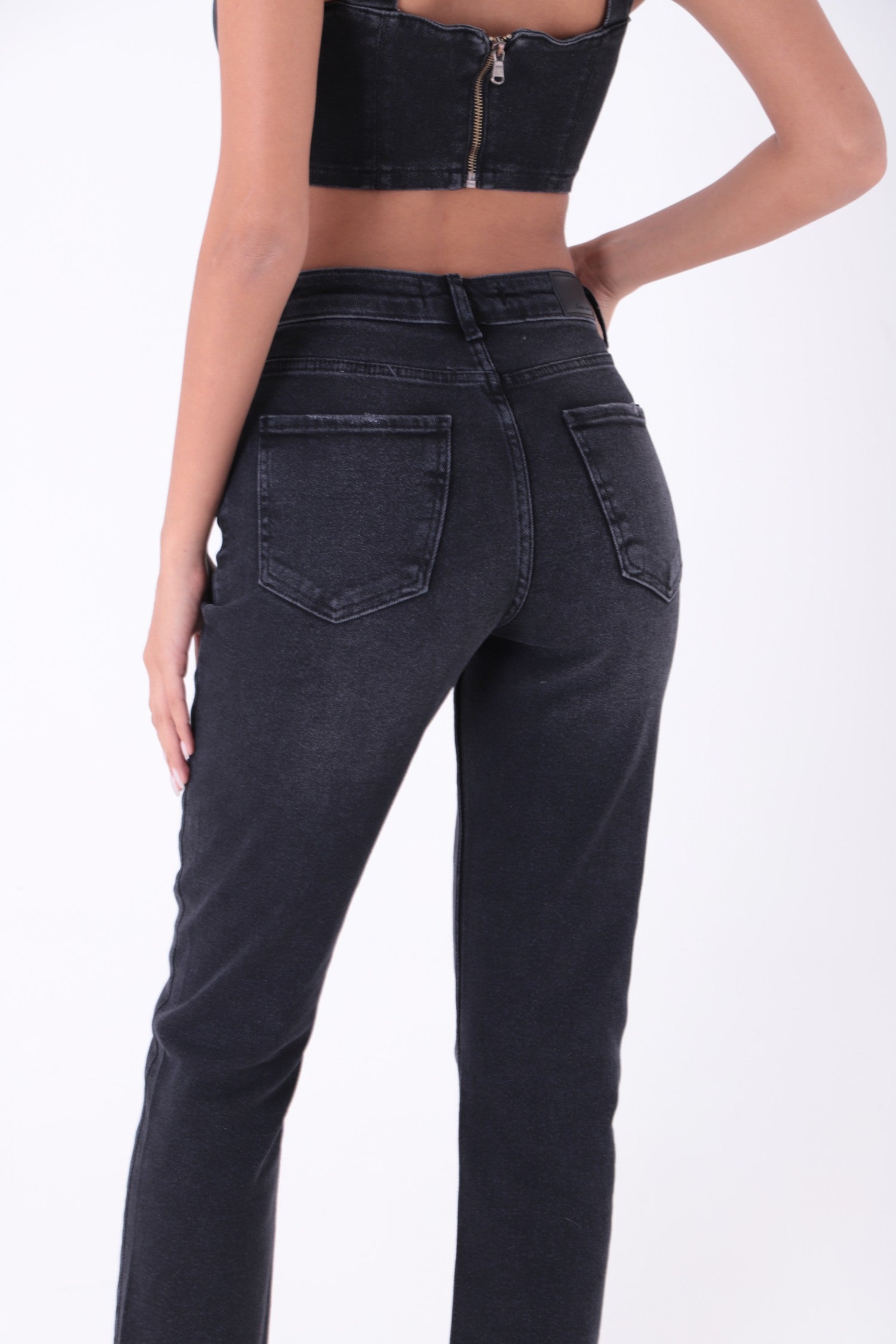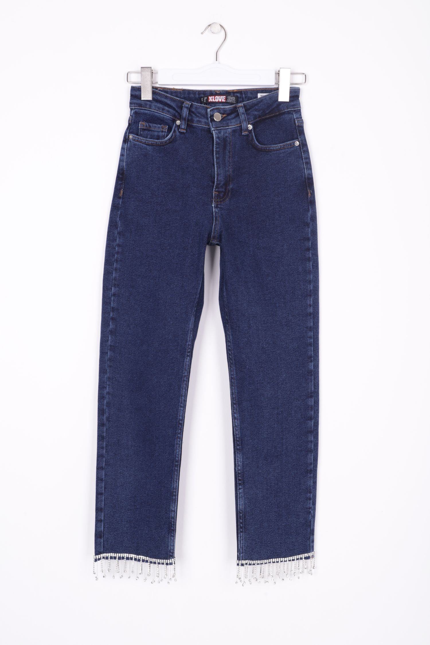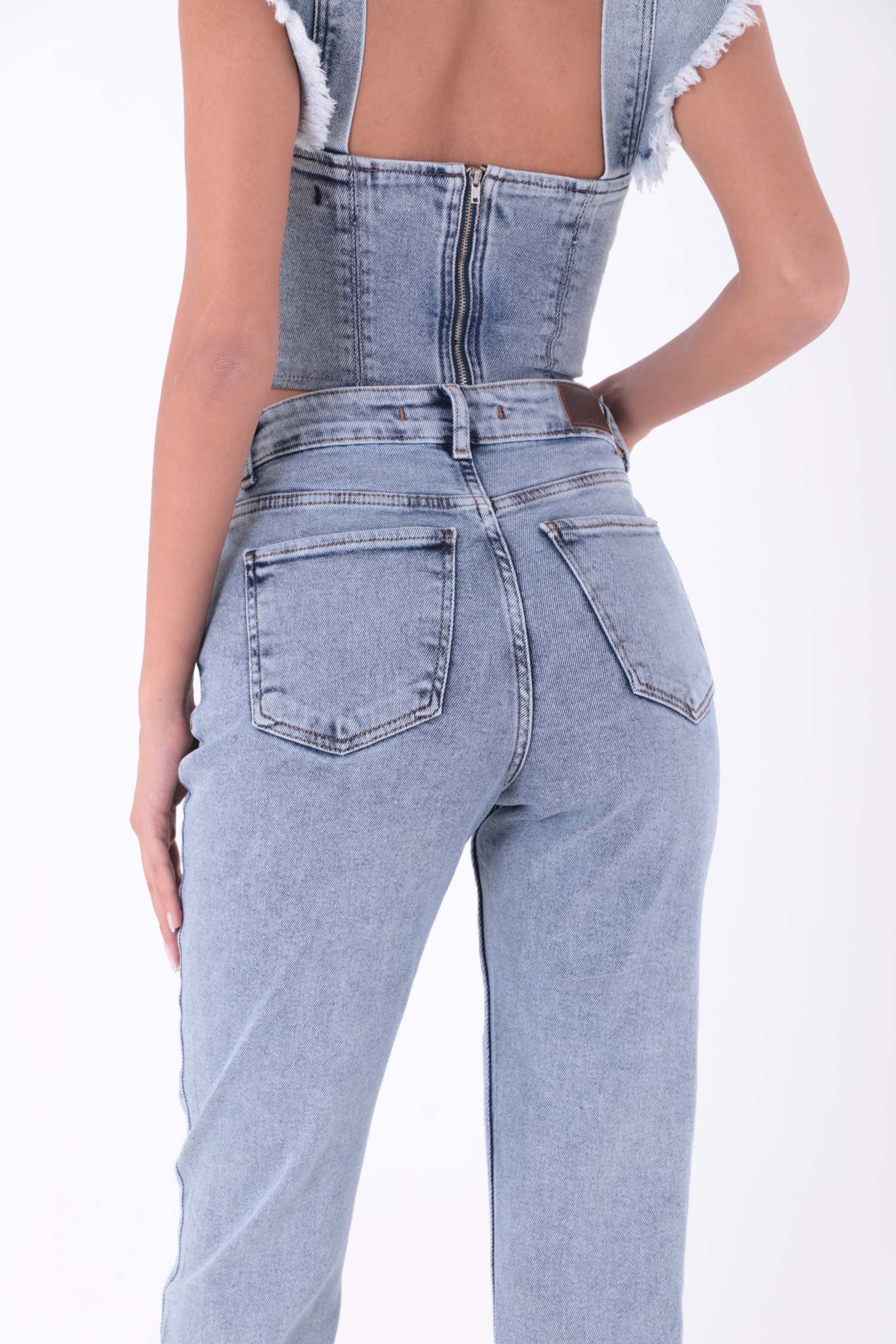 Paçasılı Dikişsiz Paça Mom Kot Pantolon 1890