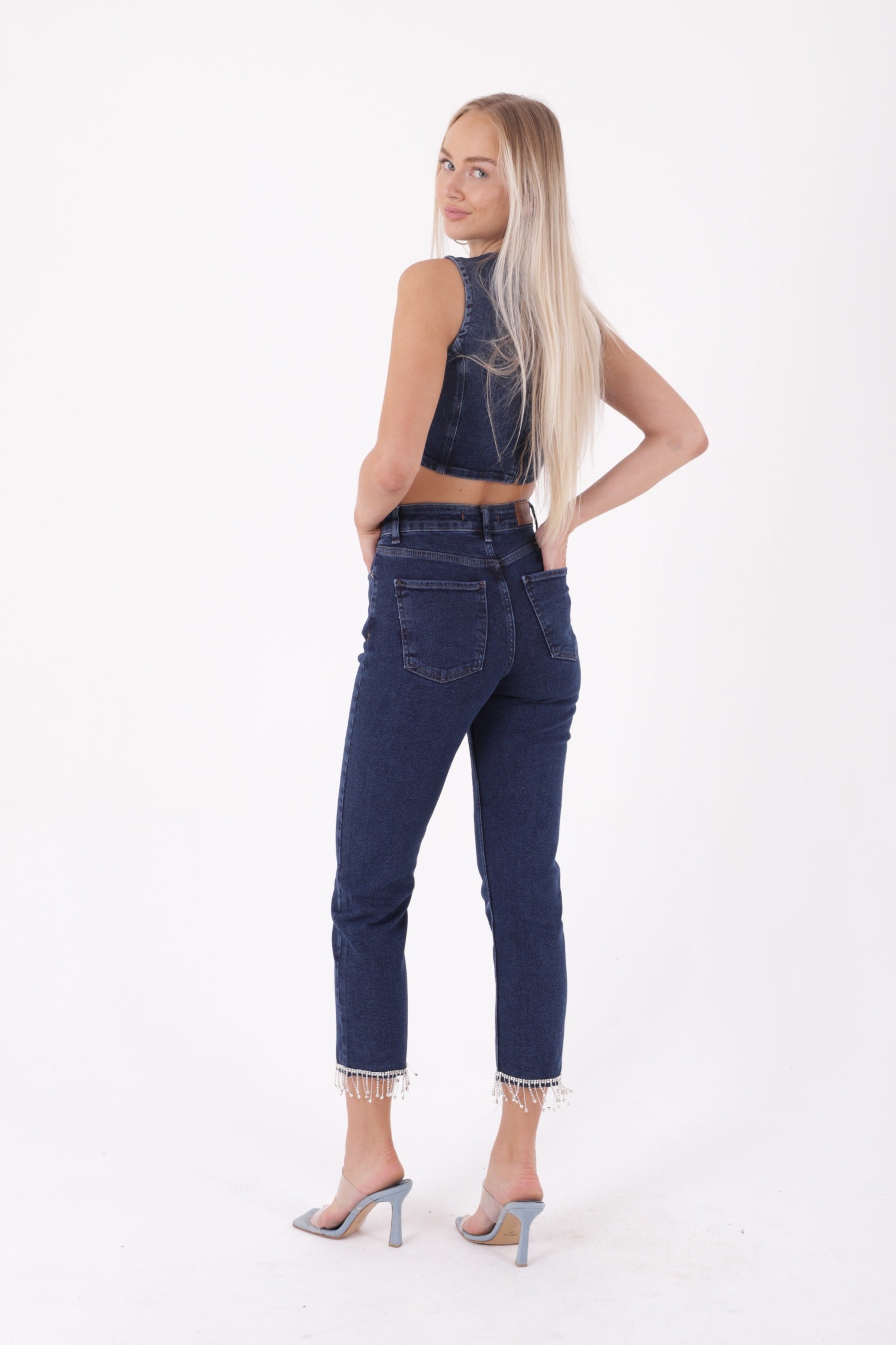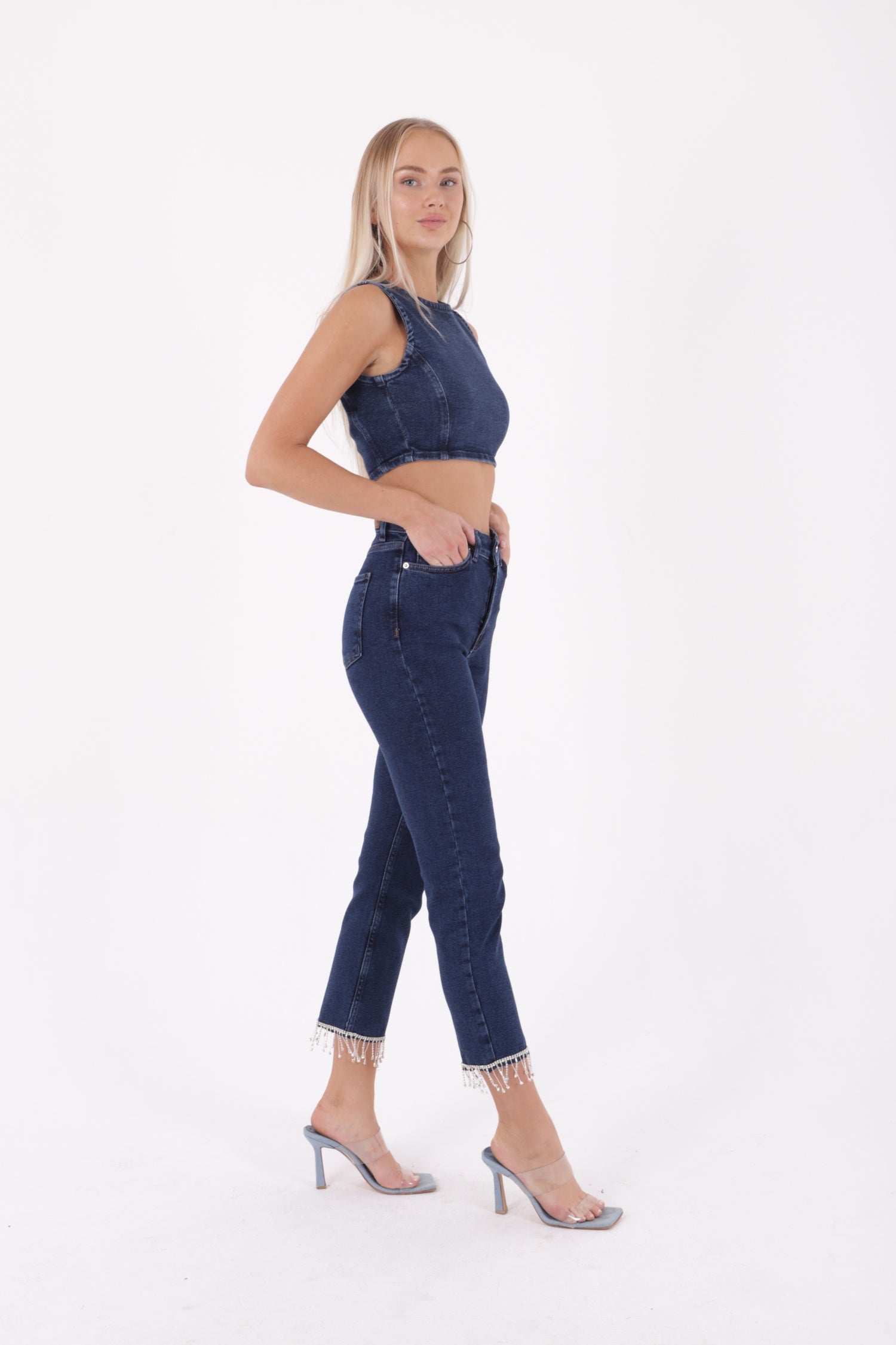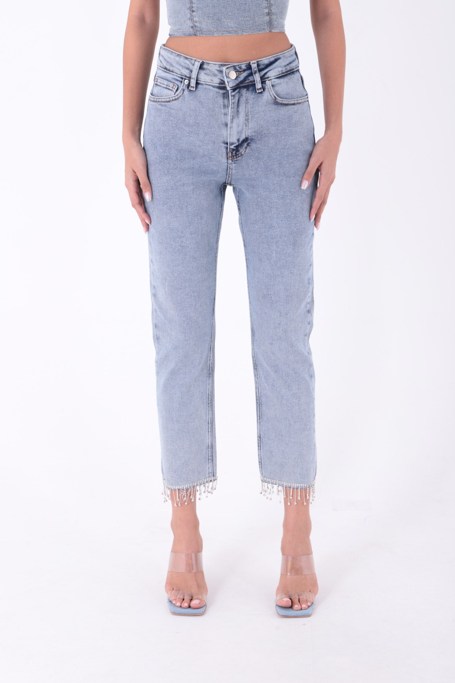 Paçasılı Dikişsiz Paça Mom Kot Pantolon 1890