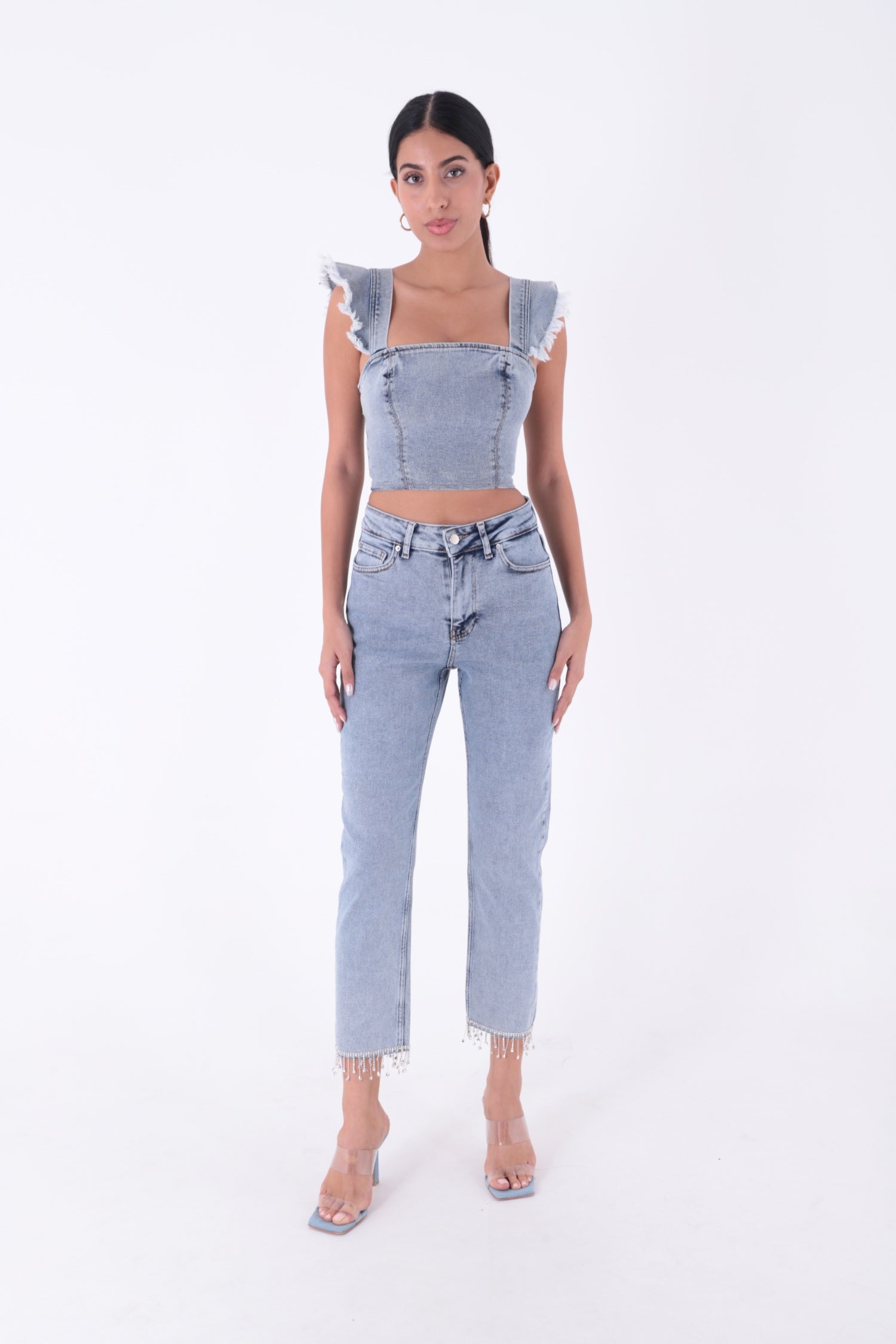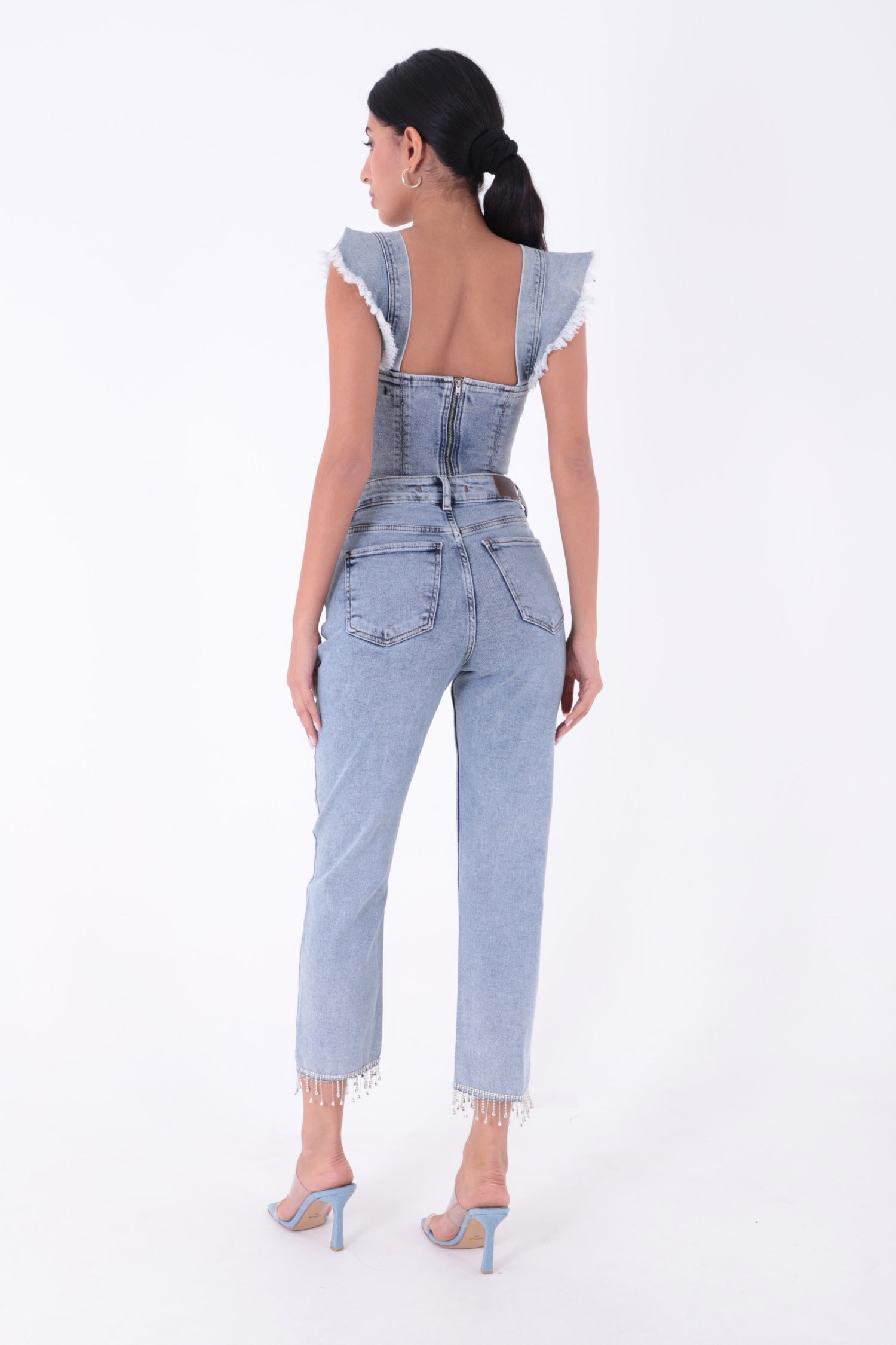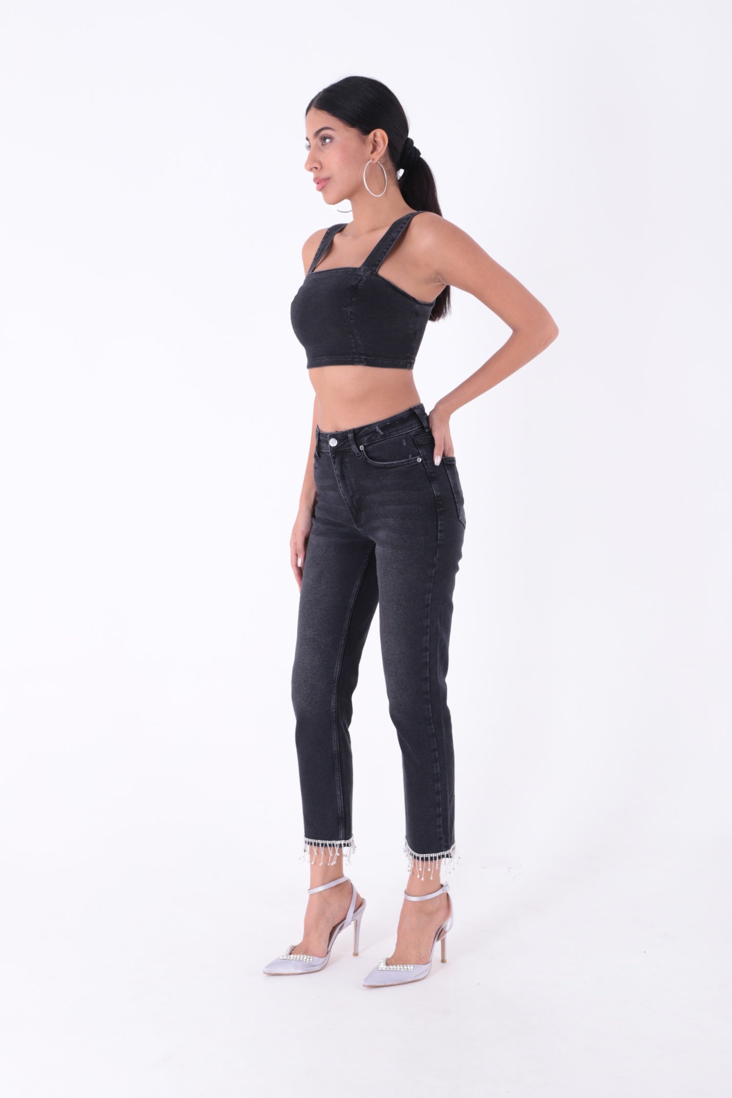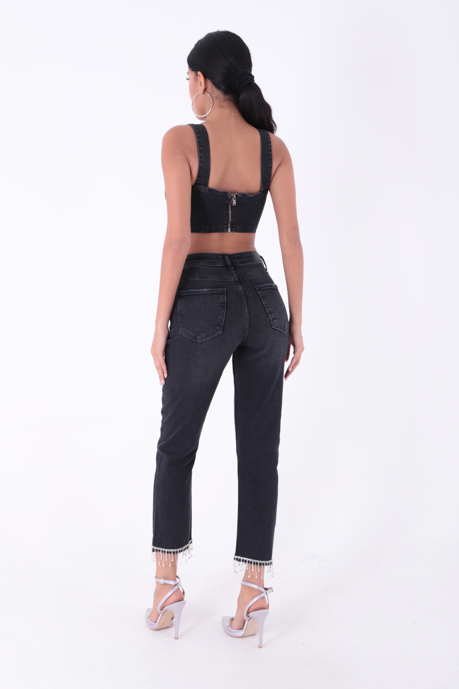Paçasılı Dikişsiz Paça Mom Kot Pantolon 1890