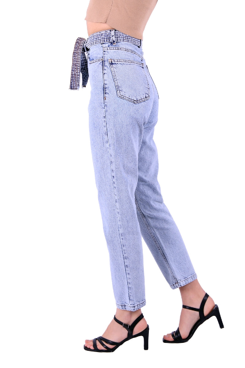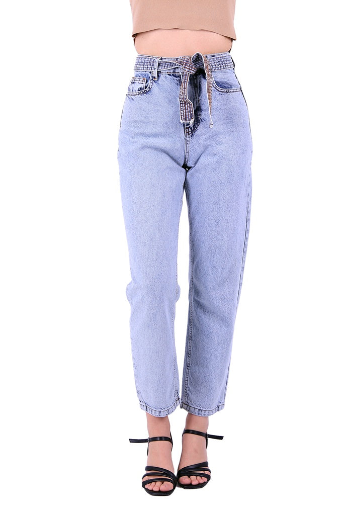 Yüksek Belli Kot Kemerli Mom Kot Pantolon 1896