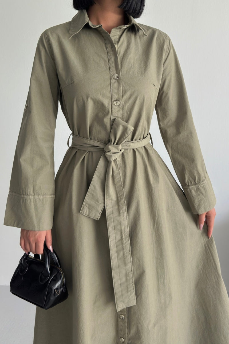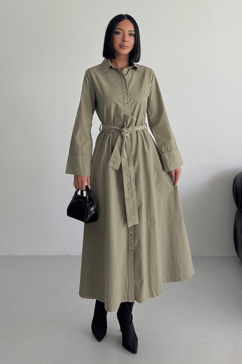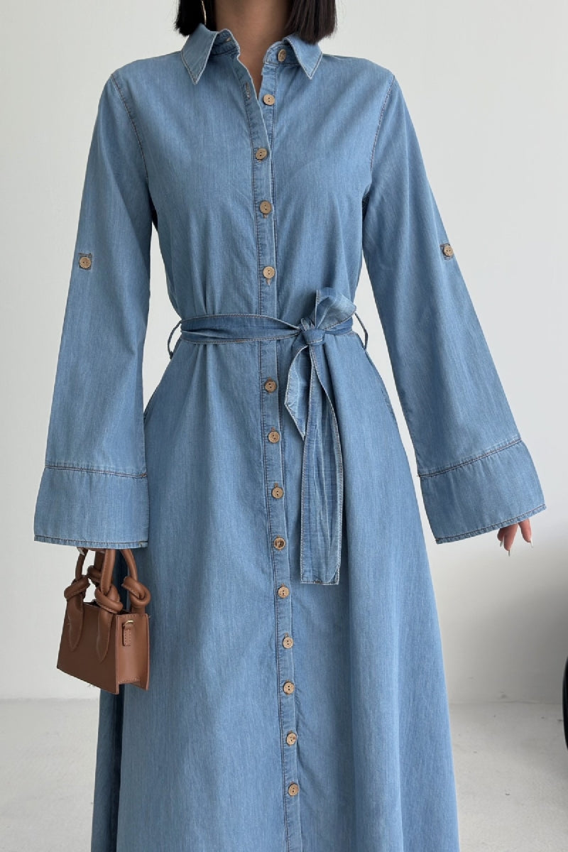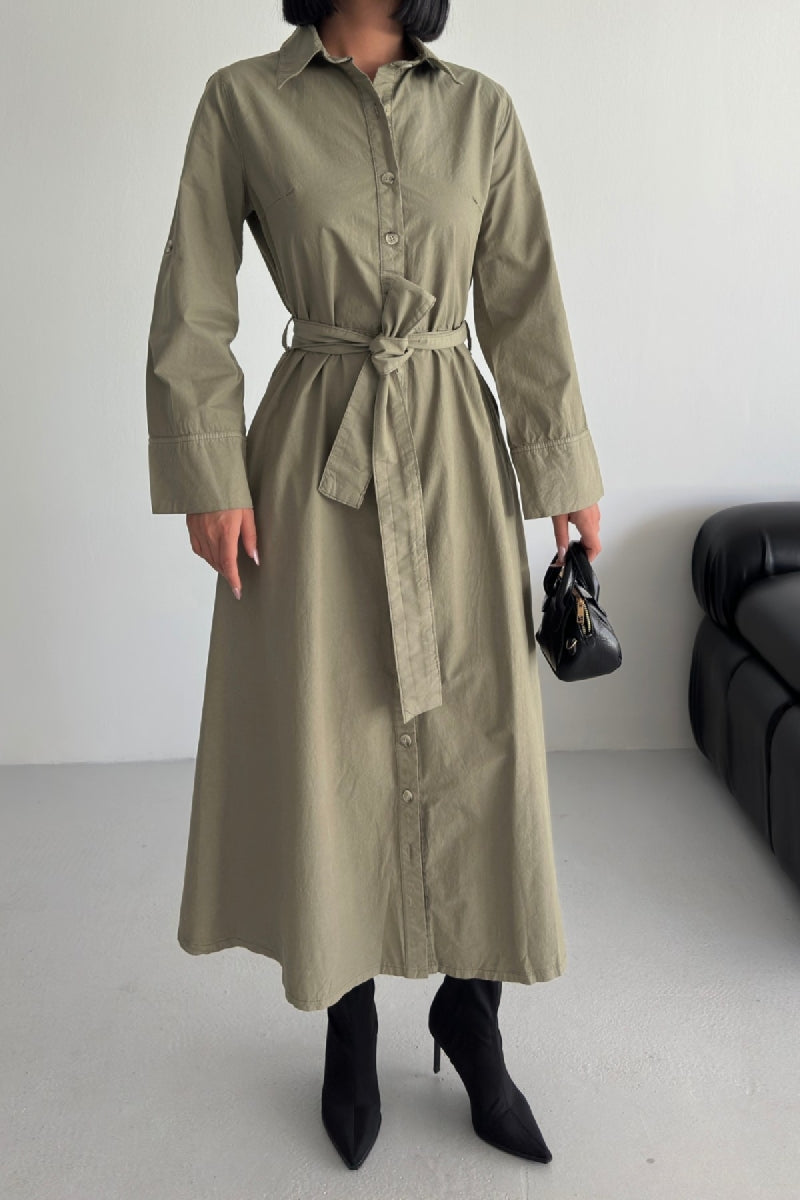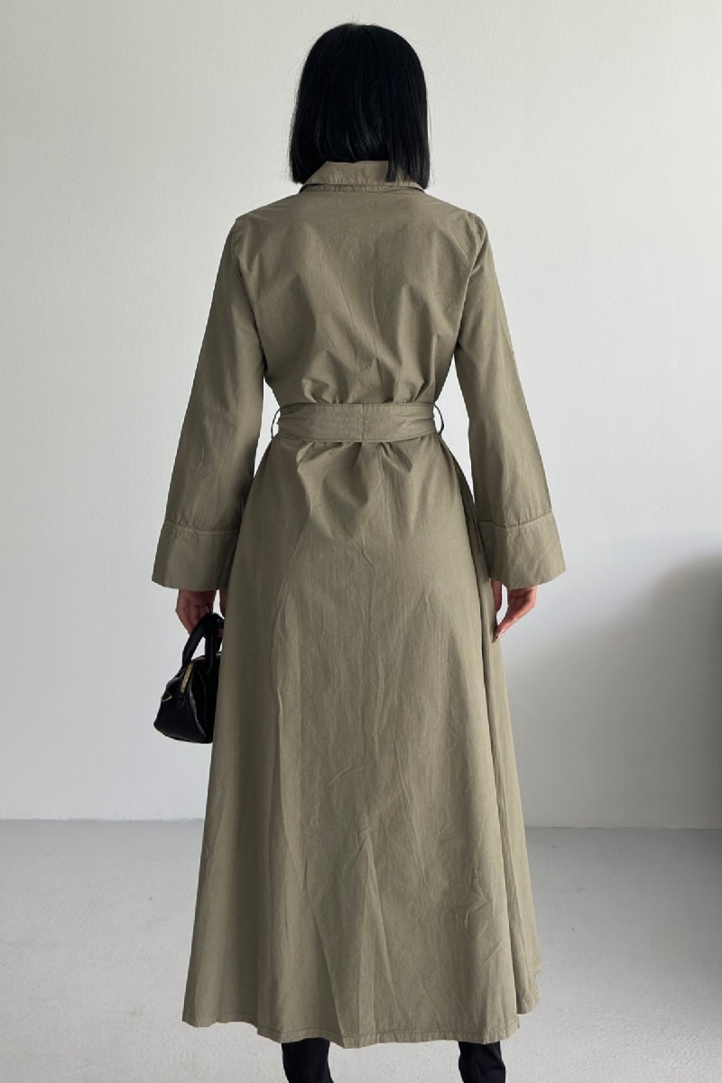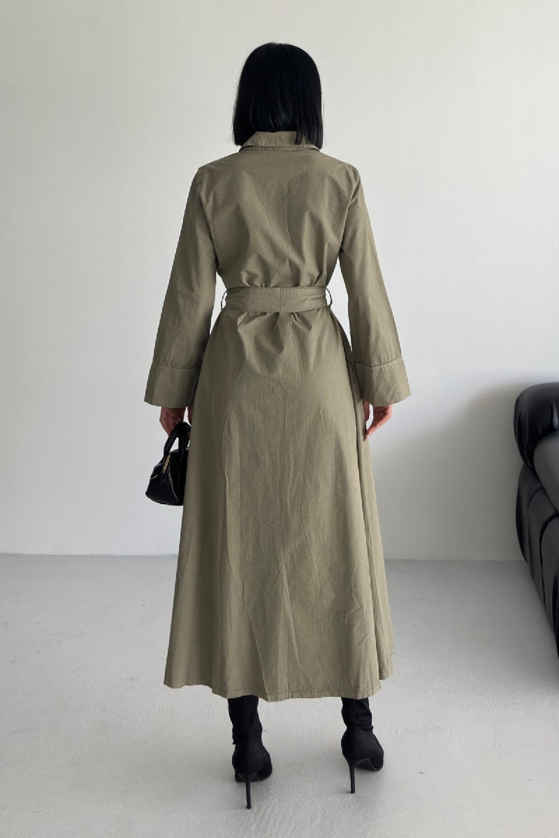 Düğmeli Uzun Boy Kot Elbise