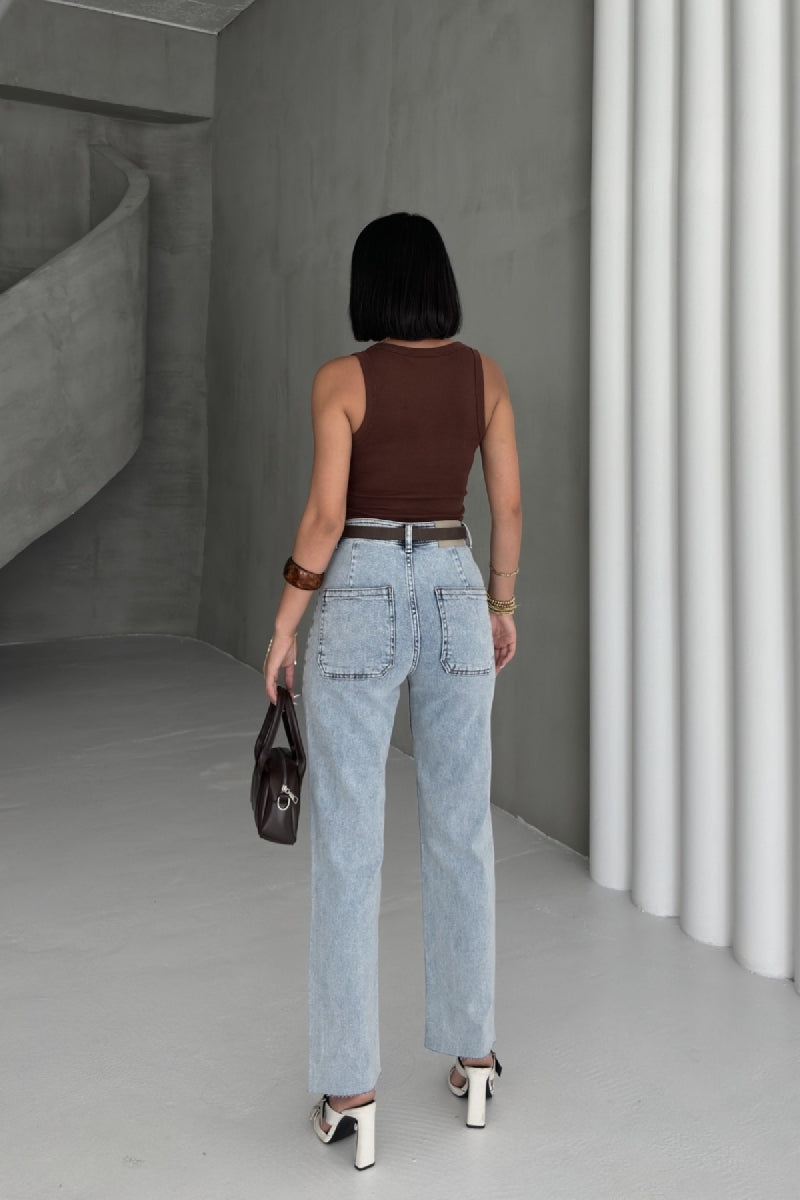 Cep Detaylı Palazzo Kot Pantolon 7073