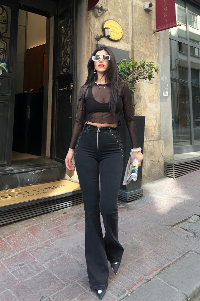 Kuşgözü Detaylı Bağcıklı Pantolon 7095