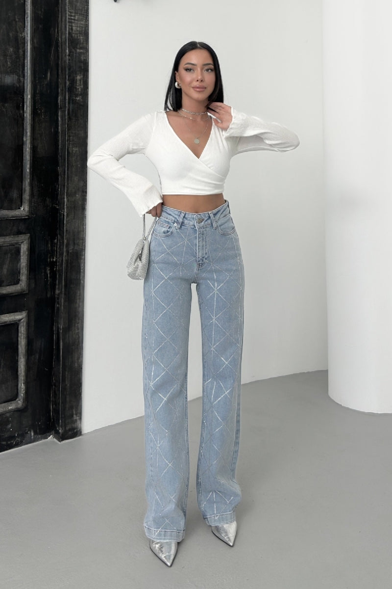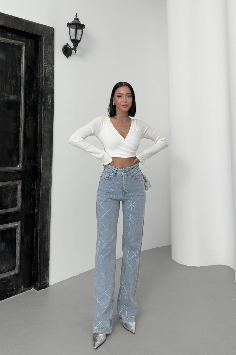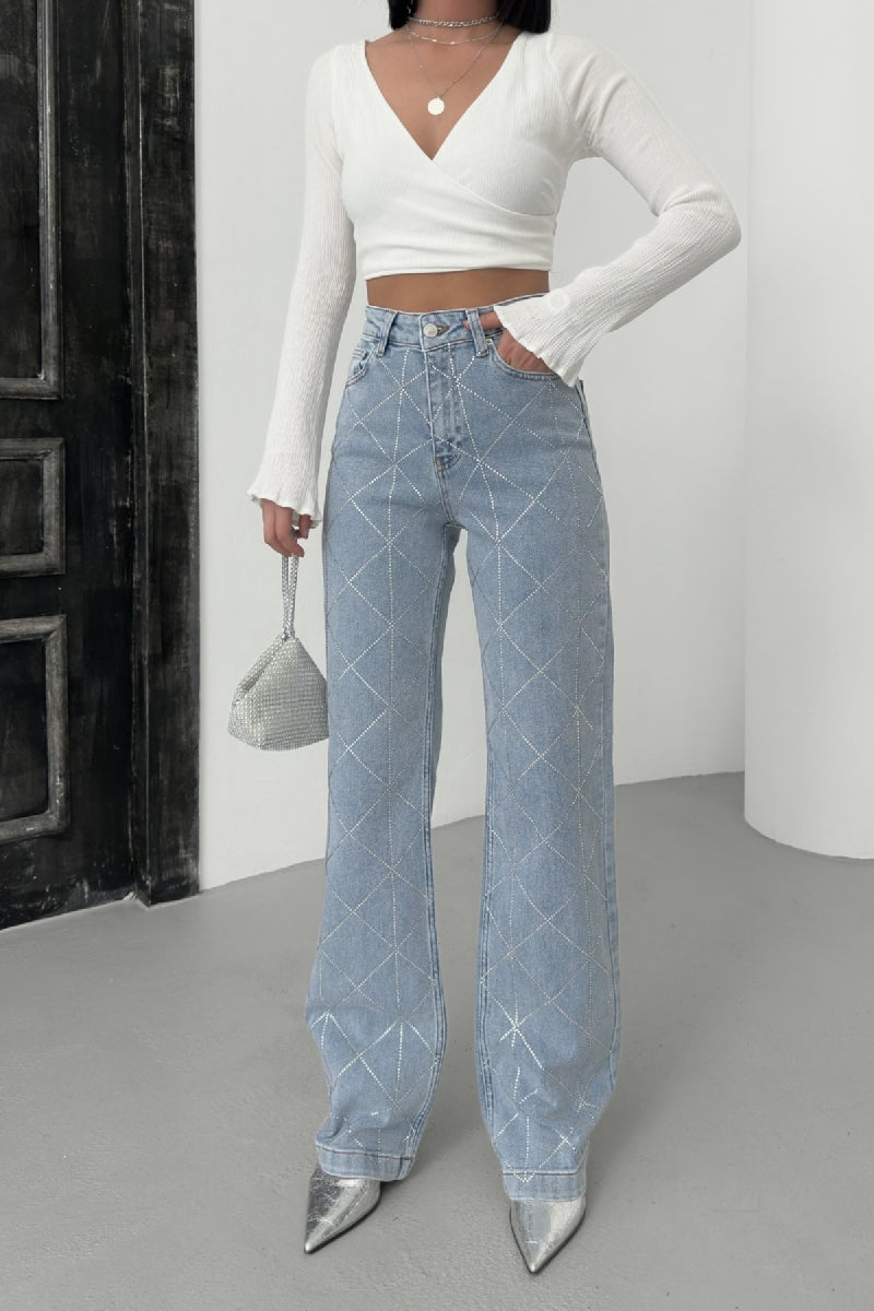 Baklava Desenli Taşlı Kot Pantolon 7106
