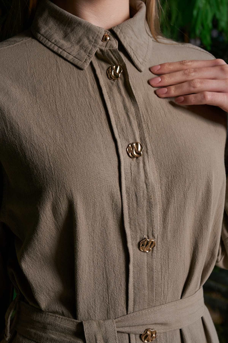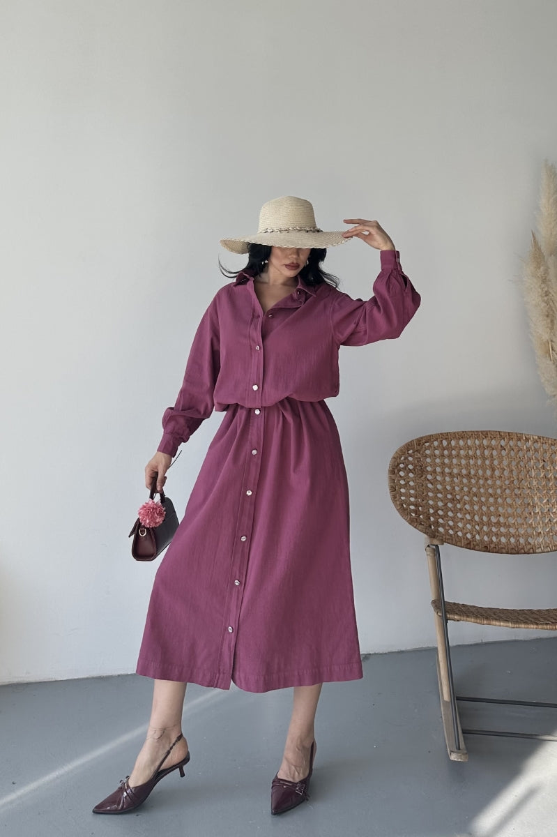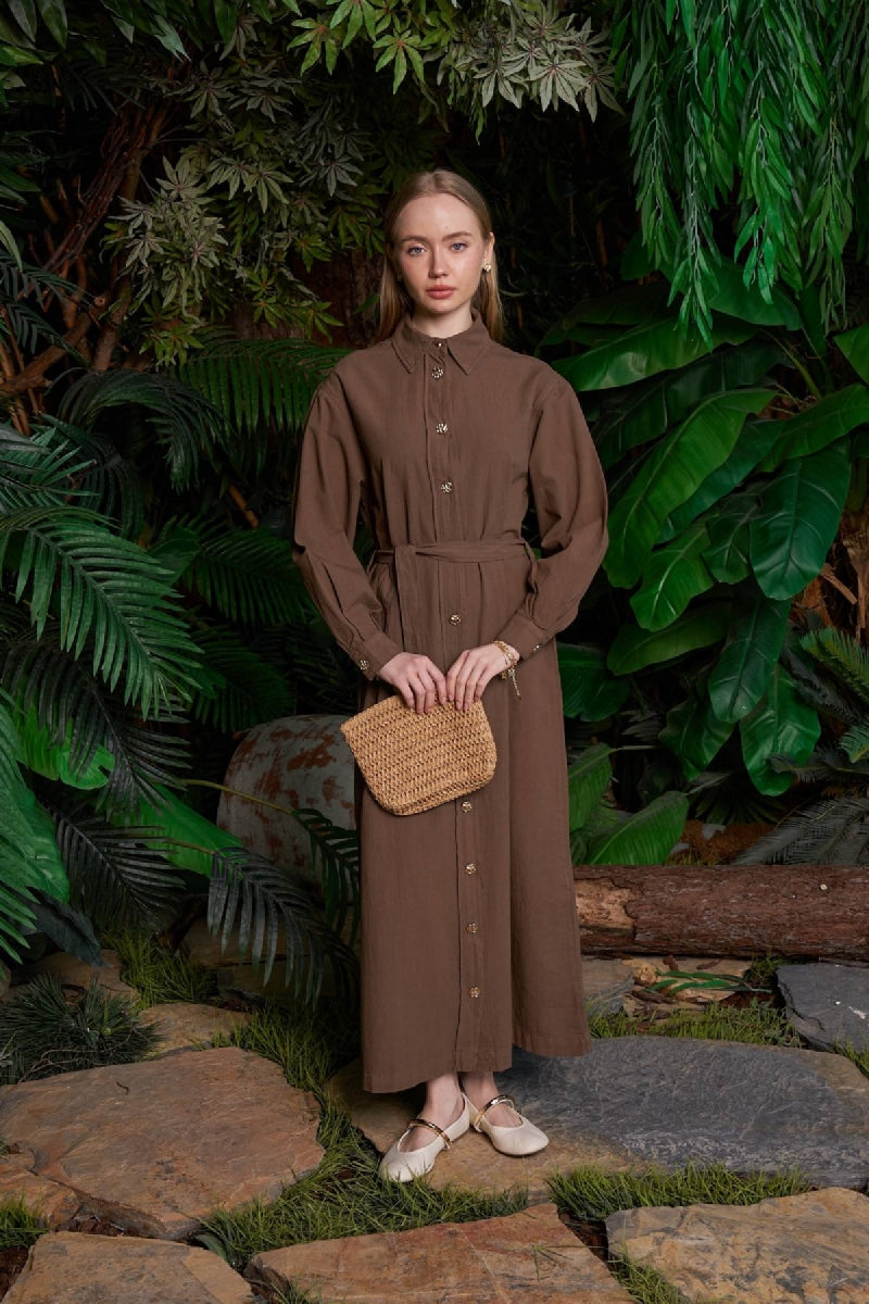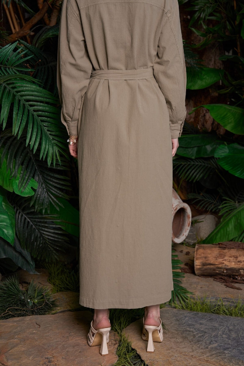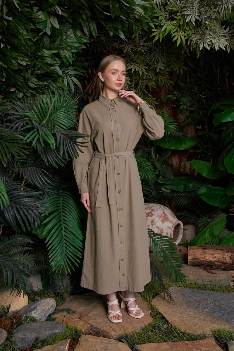 Uzun Keten Elbise HS303