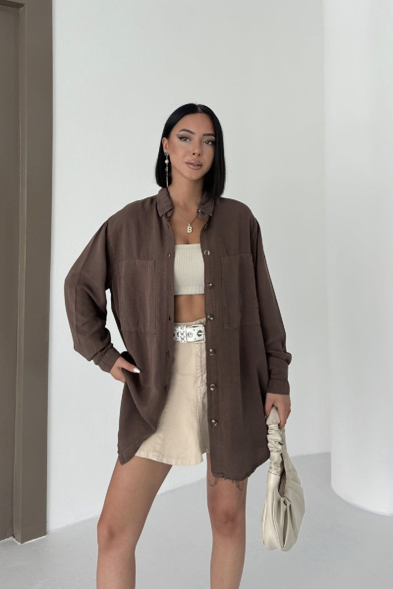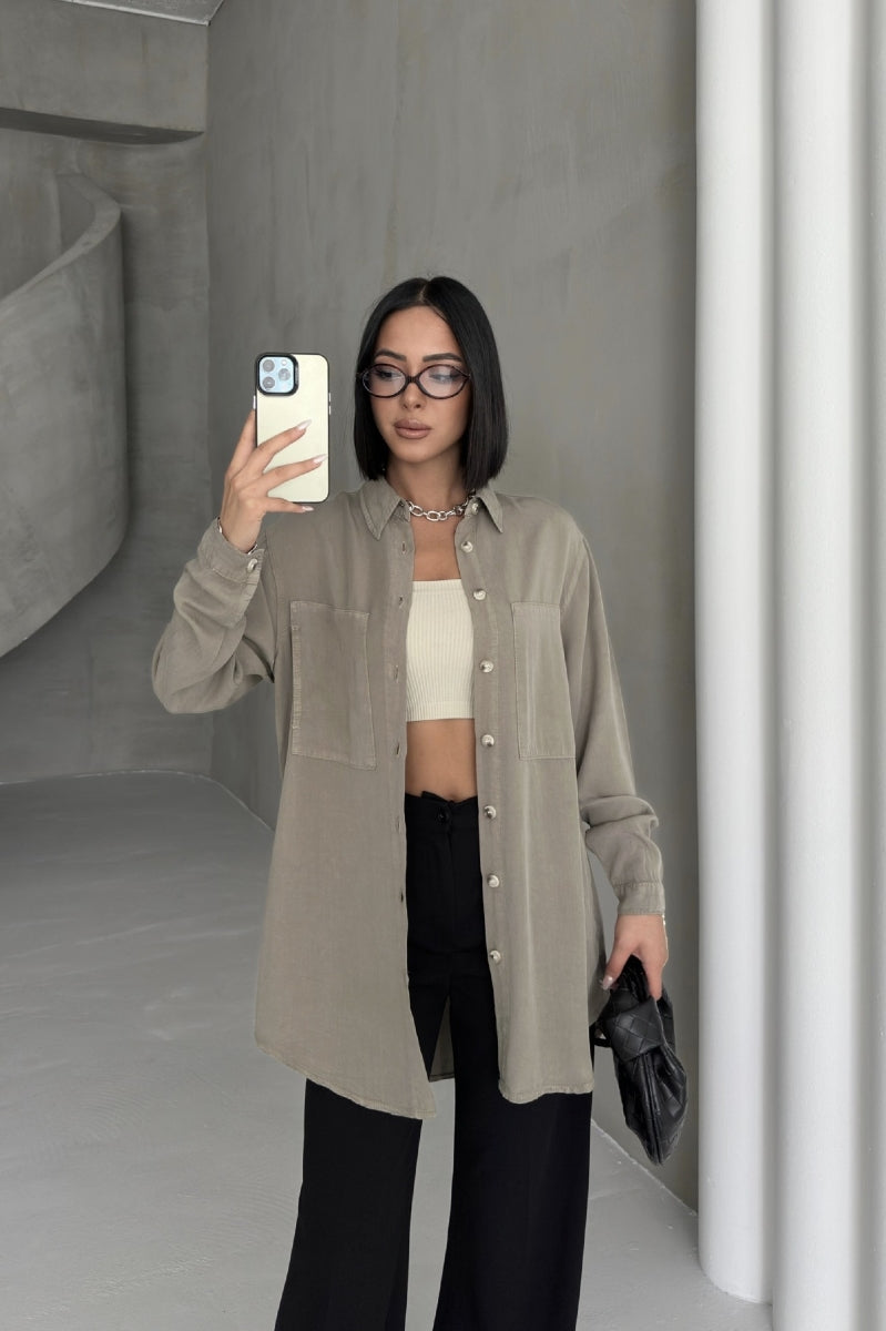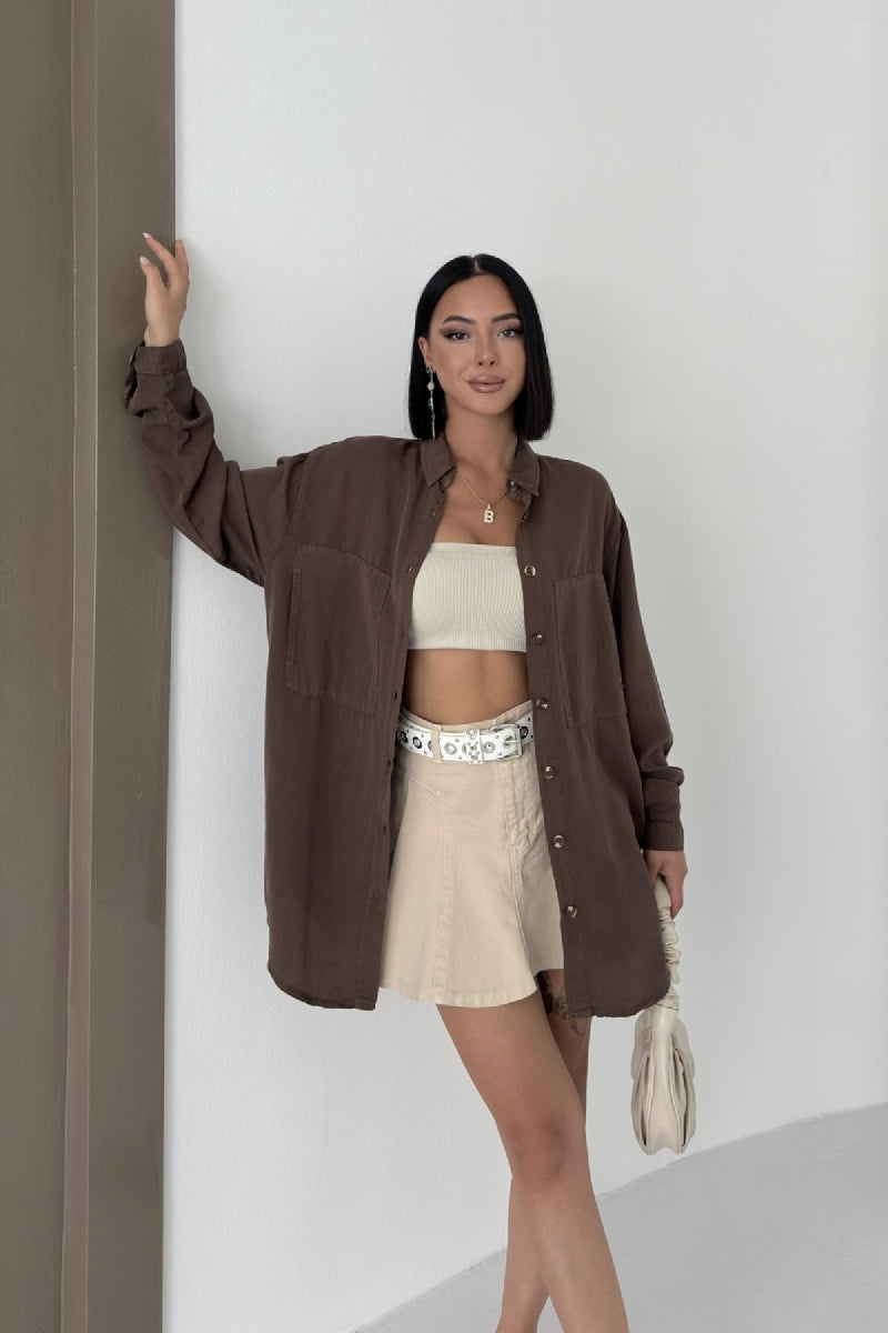 Uzun Tunik Keten Gömlek HS611